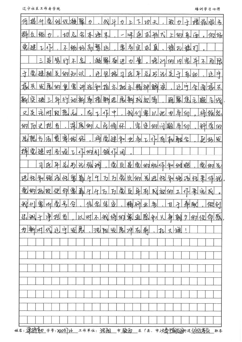 沈阳市铁西区大青中朝友谊街道党工委组织委员梁舒勍学习心得
