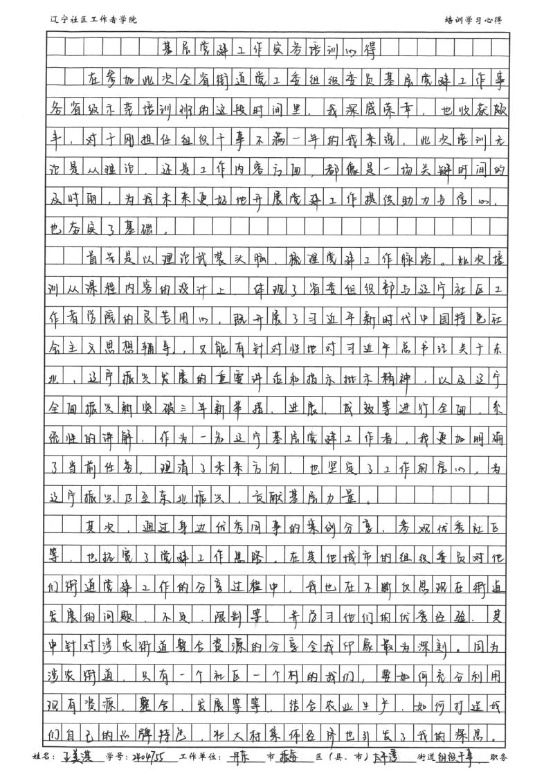 丹东市振安区太平湾街道党工委组织干事王美淇学习心得