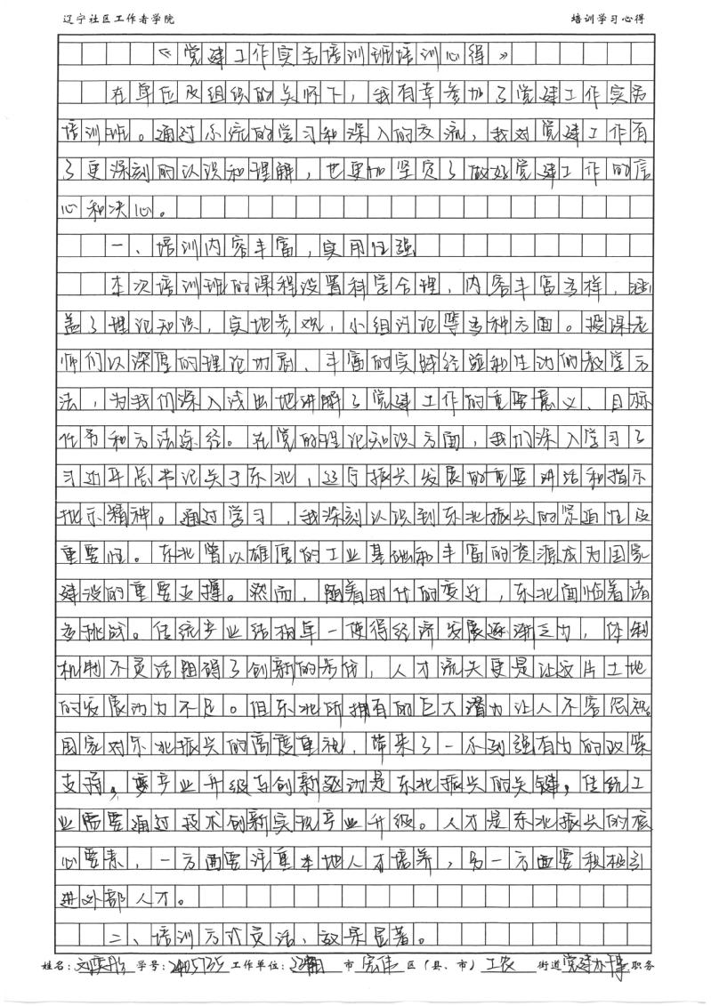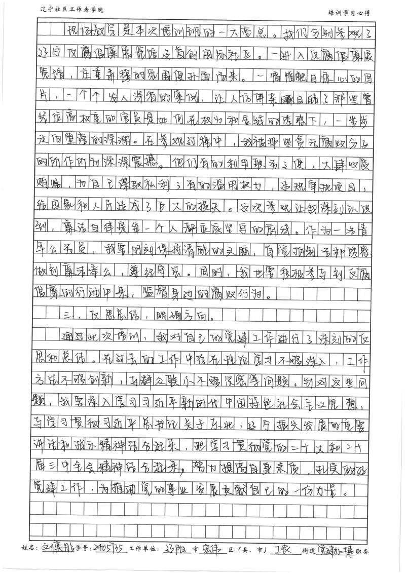 辽阳市宏伟区工农街道党建工作办公室干事刘奕彤培训心得