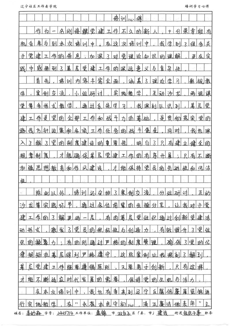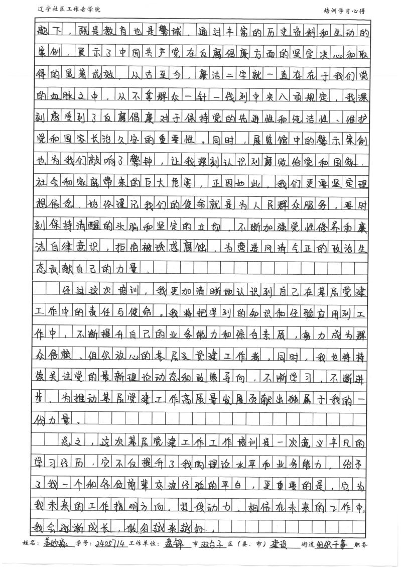 盘锦市双台子区建设街道党工委组织干事姜妙淼培训心得