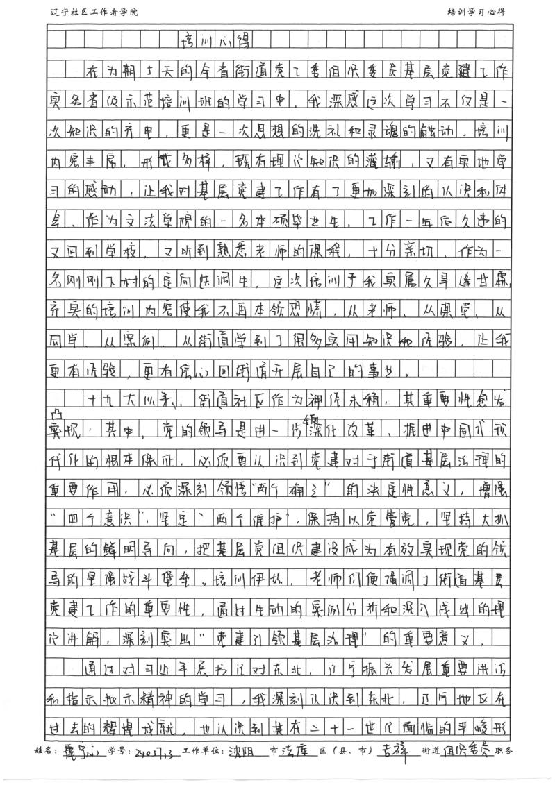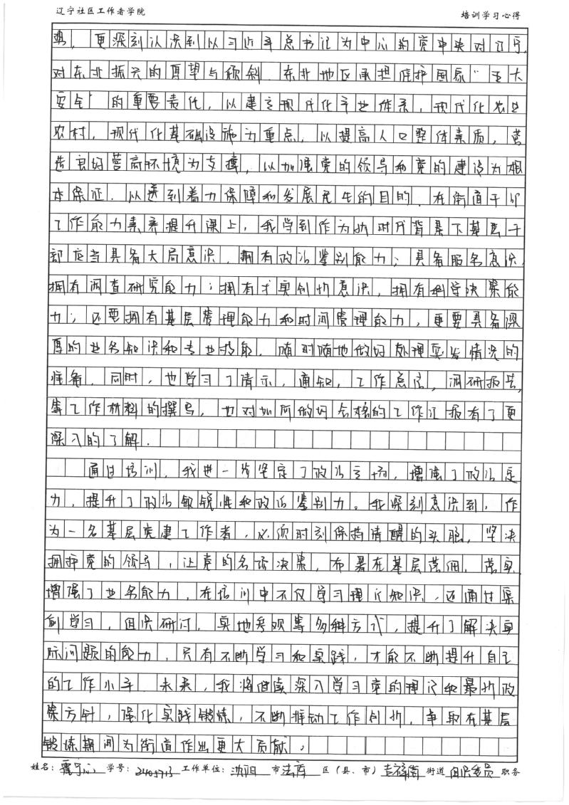 沈阳市法库县吉祥街道党工委组织委员霍宁心培训心得