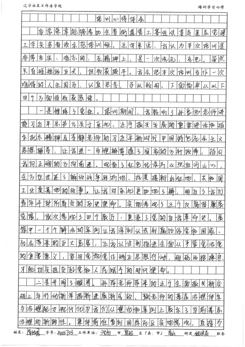 沈阳市皇姑区华山街道党工委组织员陈怡君培训心得