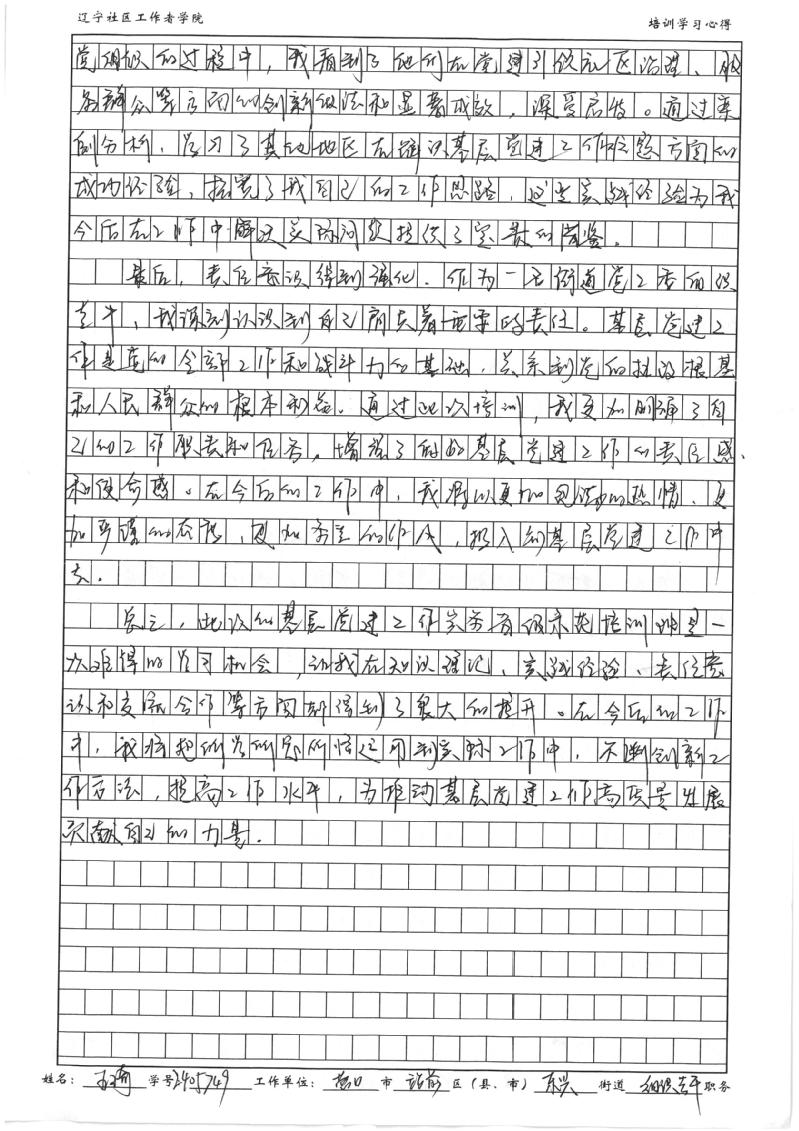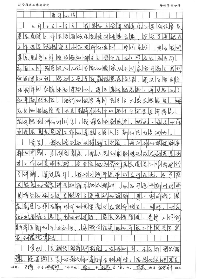 营口市站前区东兴街道党工委组织员王琦培训心得