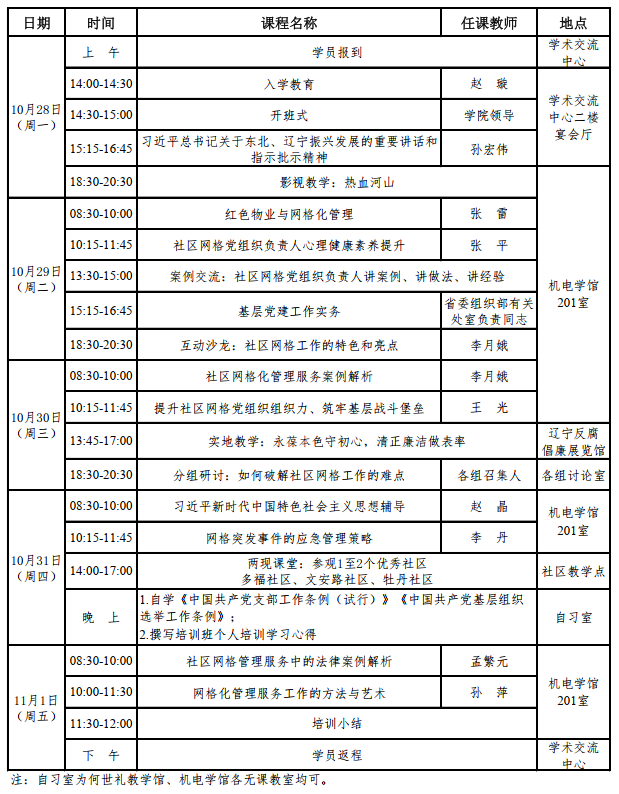 全省社区网格党组织负责人网格化管理服务省级示范培训班第二期课程安排