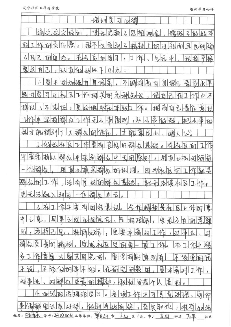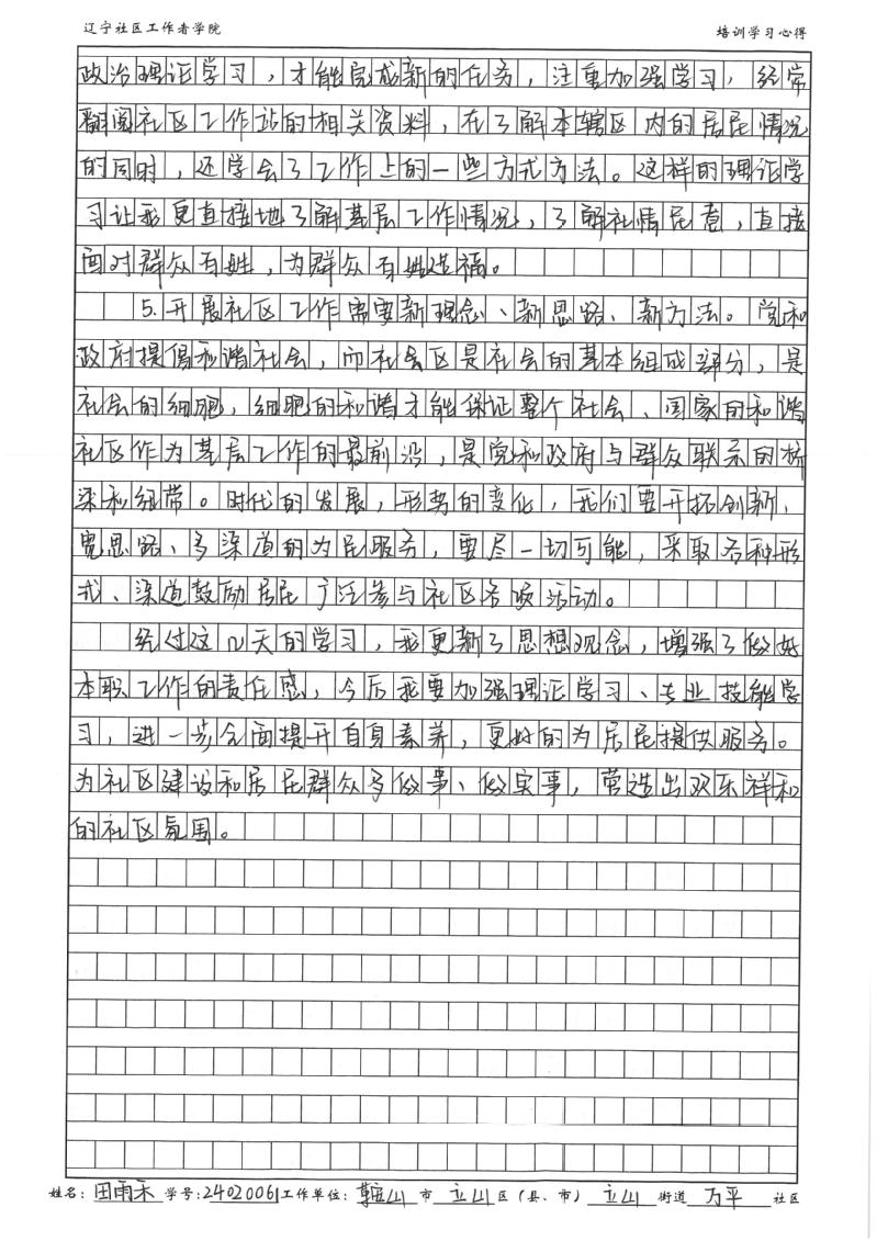 鞍山市立山区立山街道万平社区第八网格党支部书记田雨禾学习心得