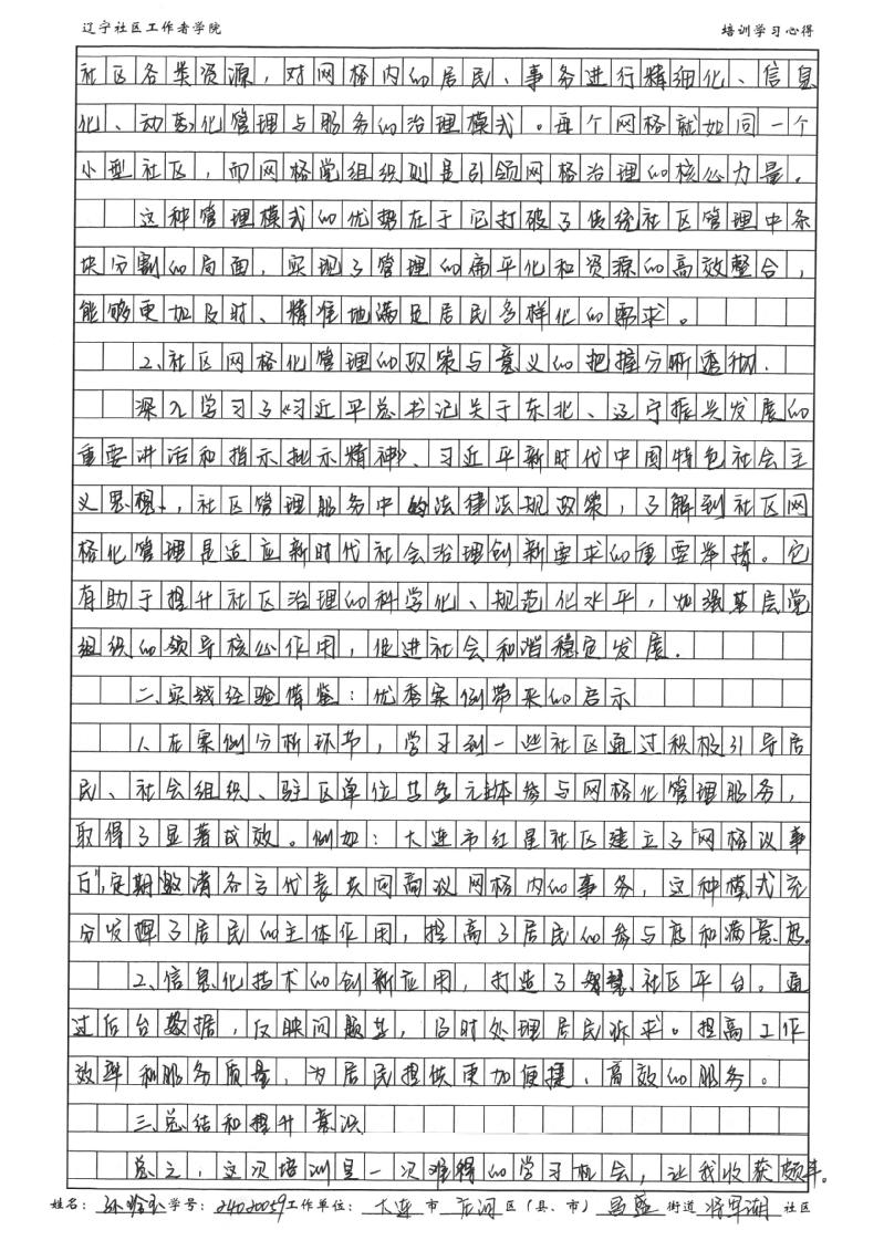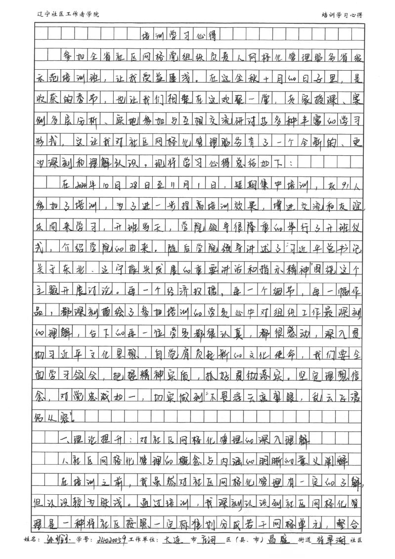 大连市庄河市昌盛街道将军湖社区第二网格党支部书记孙玲玉学习心得