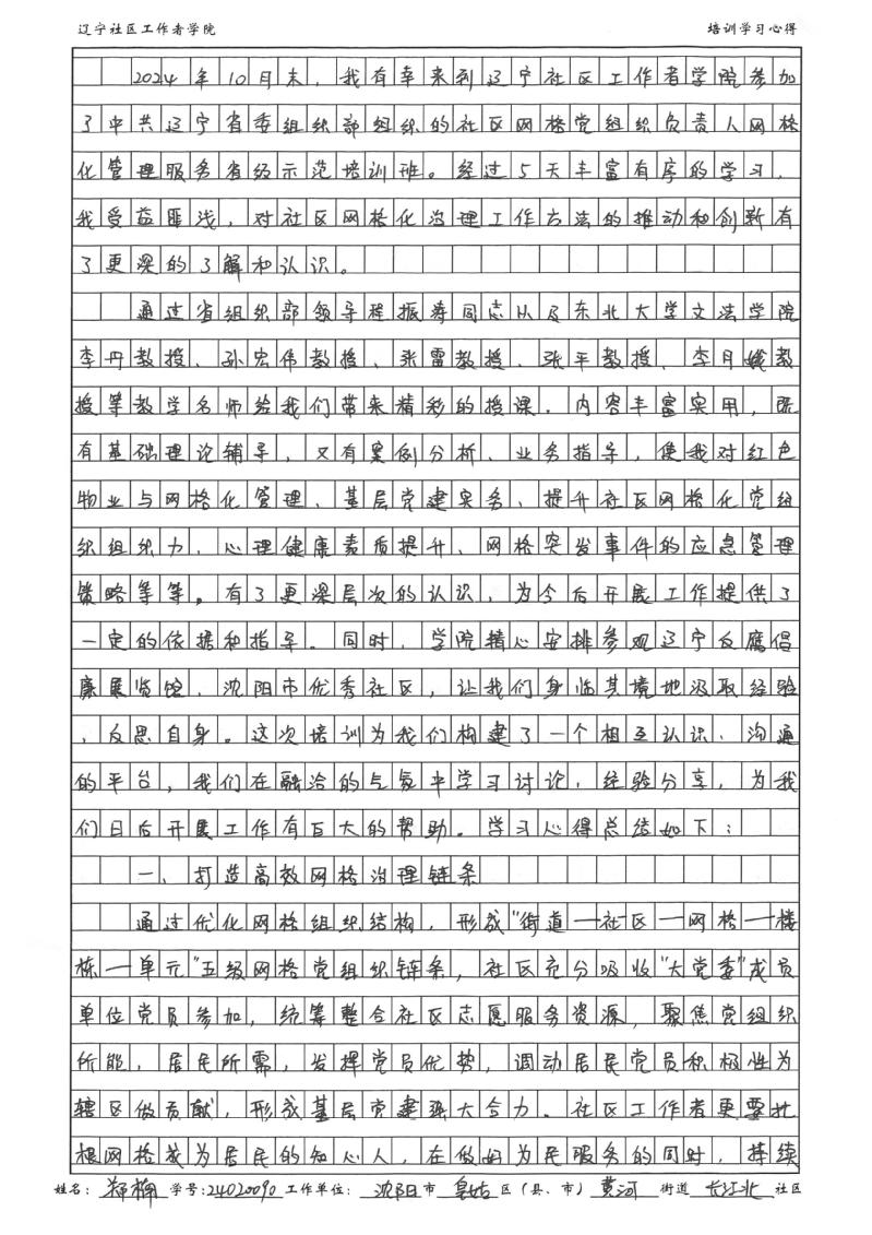 沈阳市皇姑区黄河街道长江北社区第八网格党支部书记郑楠学习心得