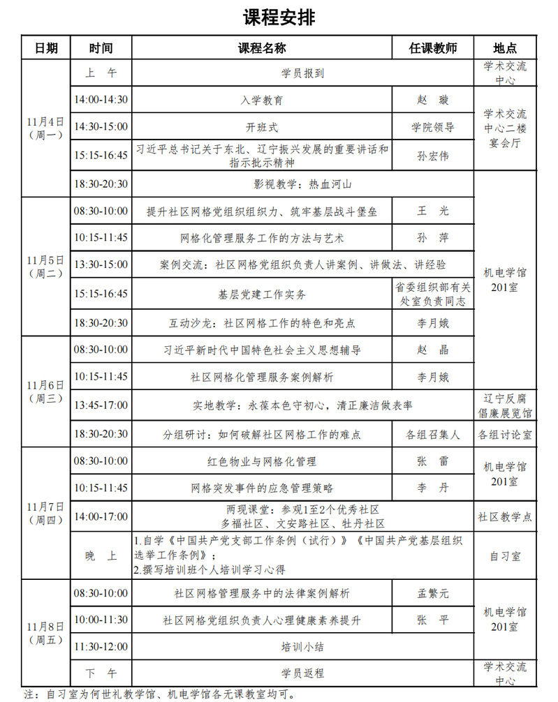 全省社区网格党组织负责人网格化管理服务省级示范培训班第三期课程安排