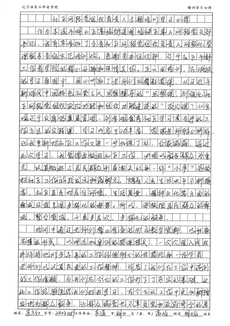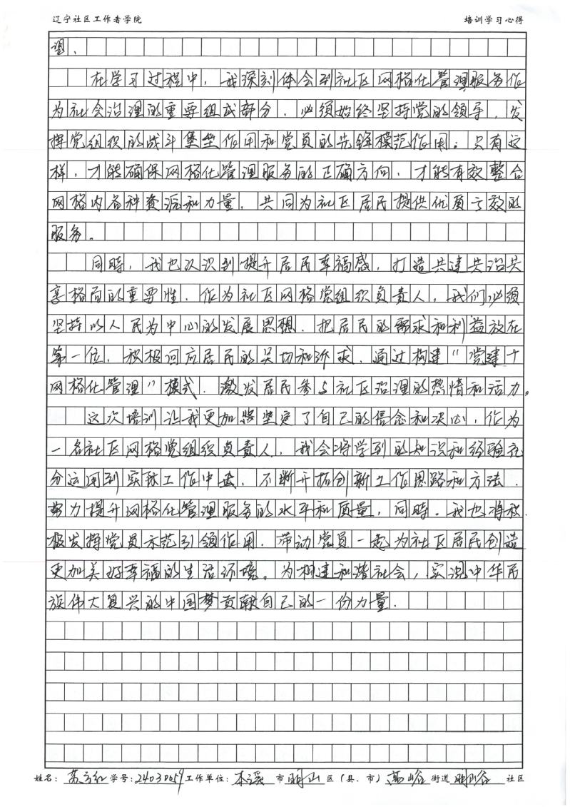 本溪市明山区高峪街道明峪社区第八网格党支部书记苏方红学习心得