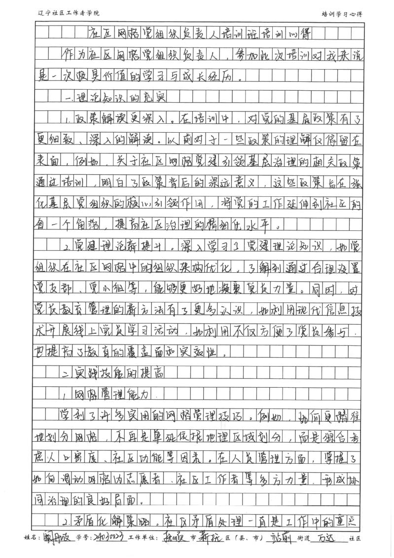 抚顺市新抚区站前街道万达社区第十三网格党支部书记阚丹岐学习心得