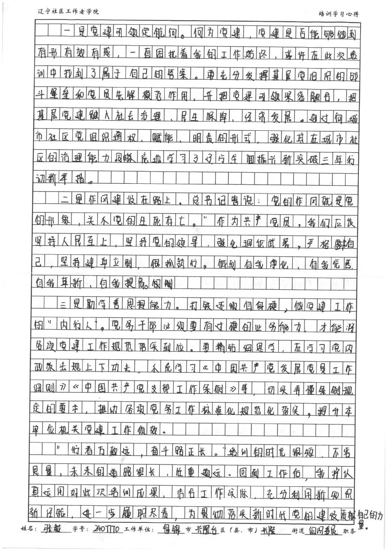盘锦市兴隆台区兴隆街道党工委组织委员张越学习心得