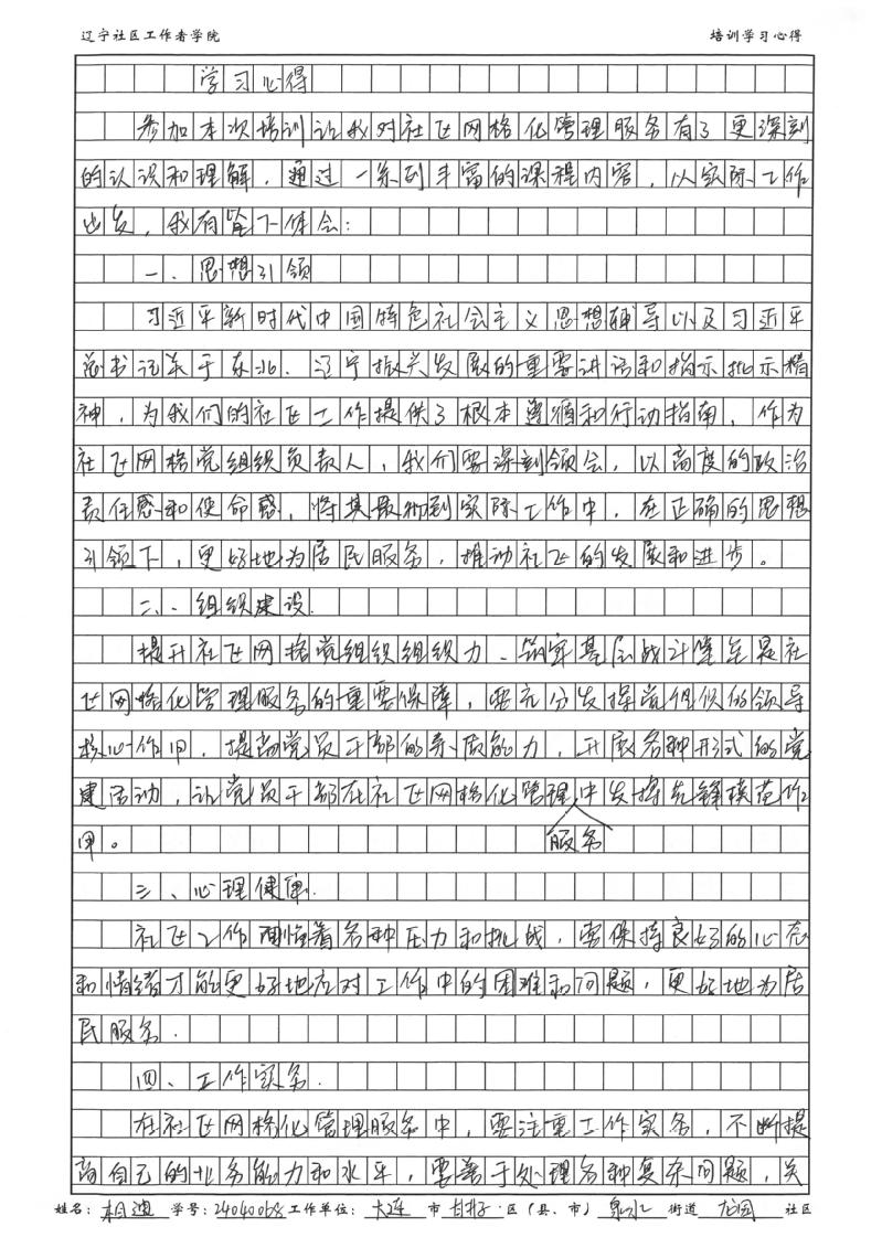 大连市甘井子区泉水街道龙园社区第九网格党支部书记相迪学习心得