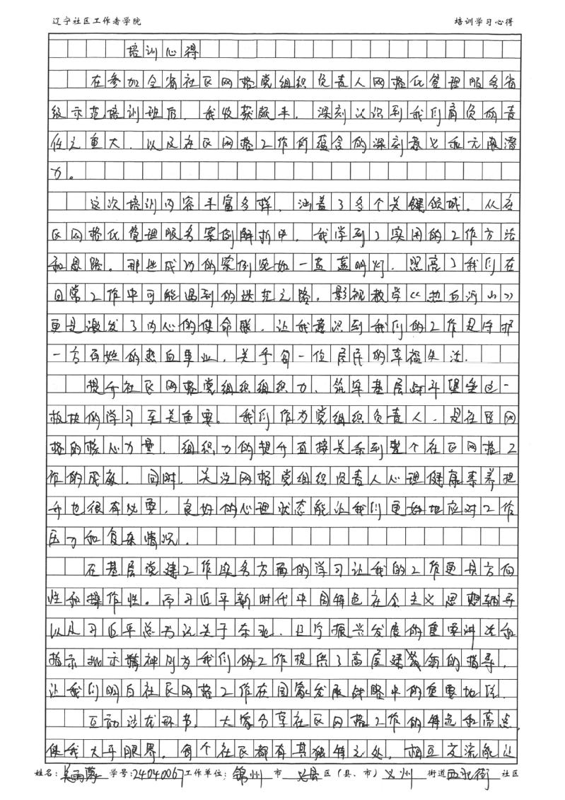 锦州市义县义州街道西北街社区第三网格党支部书记吴雨蒙学习心得