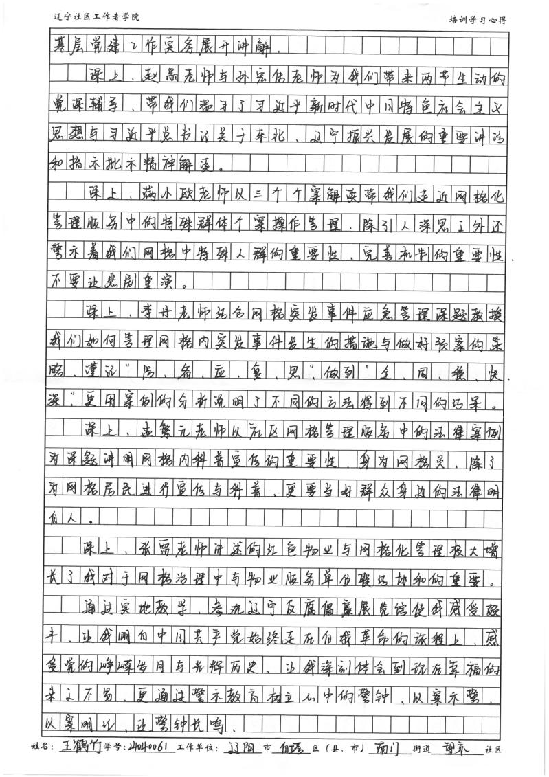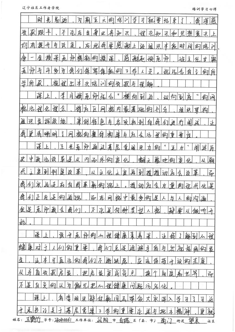 辽阳市白塔区南门街道望京社区第三网格党支部书记王鹤竹学习心得