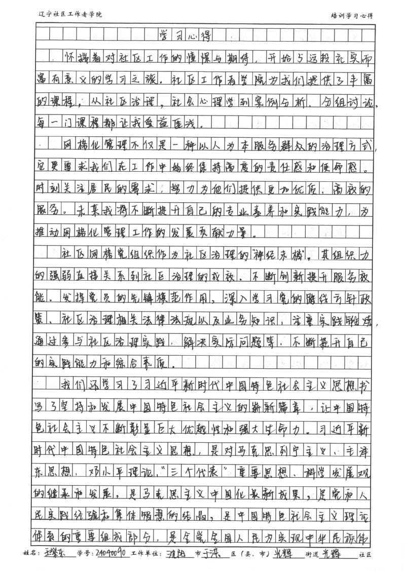 沈阳市于洪区光辉街道光辉社区第一网格党支部书记王紫东学习心得