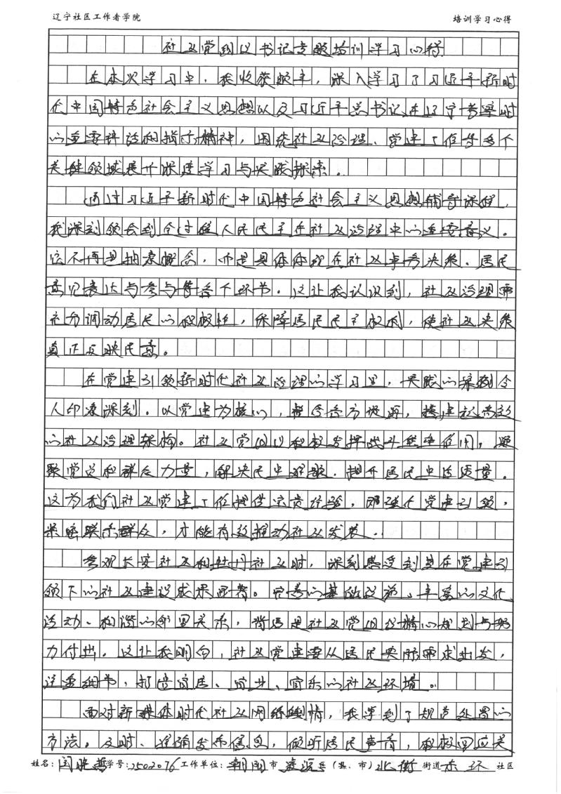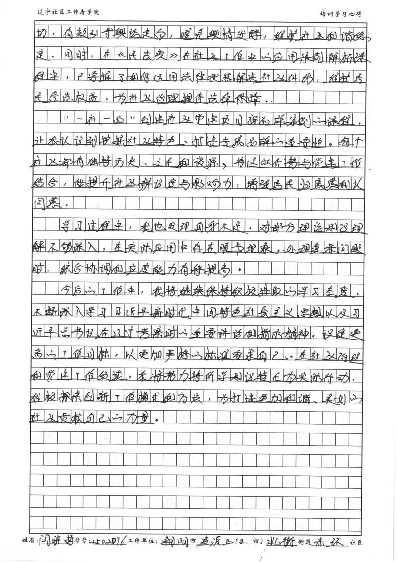 朝阳市凌源市北街街道东环社区党委书记、居委会主任闫晓哲学习心得