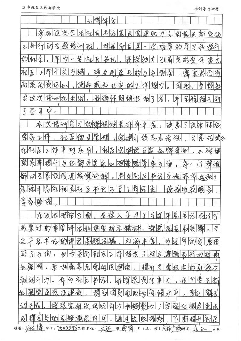 大连市西岗区人民广场街道九三社区党委书记、居委会主任张杰睿学习心得