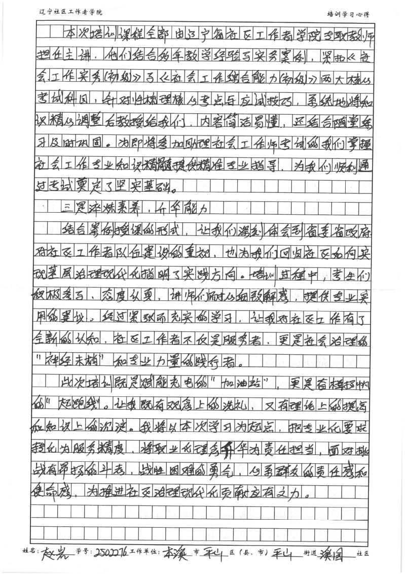 本溪市平山区平山街道溪园社区党委副书记赵岩学习心得