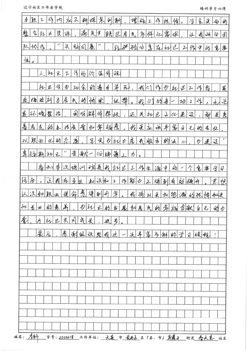 大连市甘井子区辛寨子街道春天里社区城管专干李轩学习心得