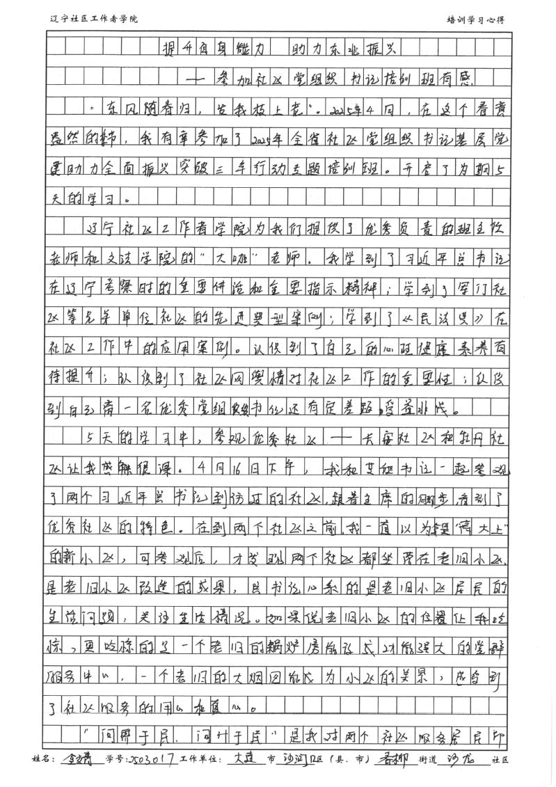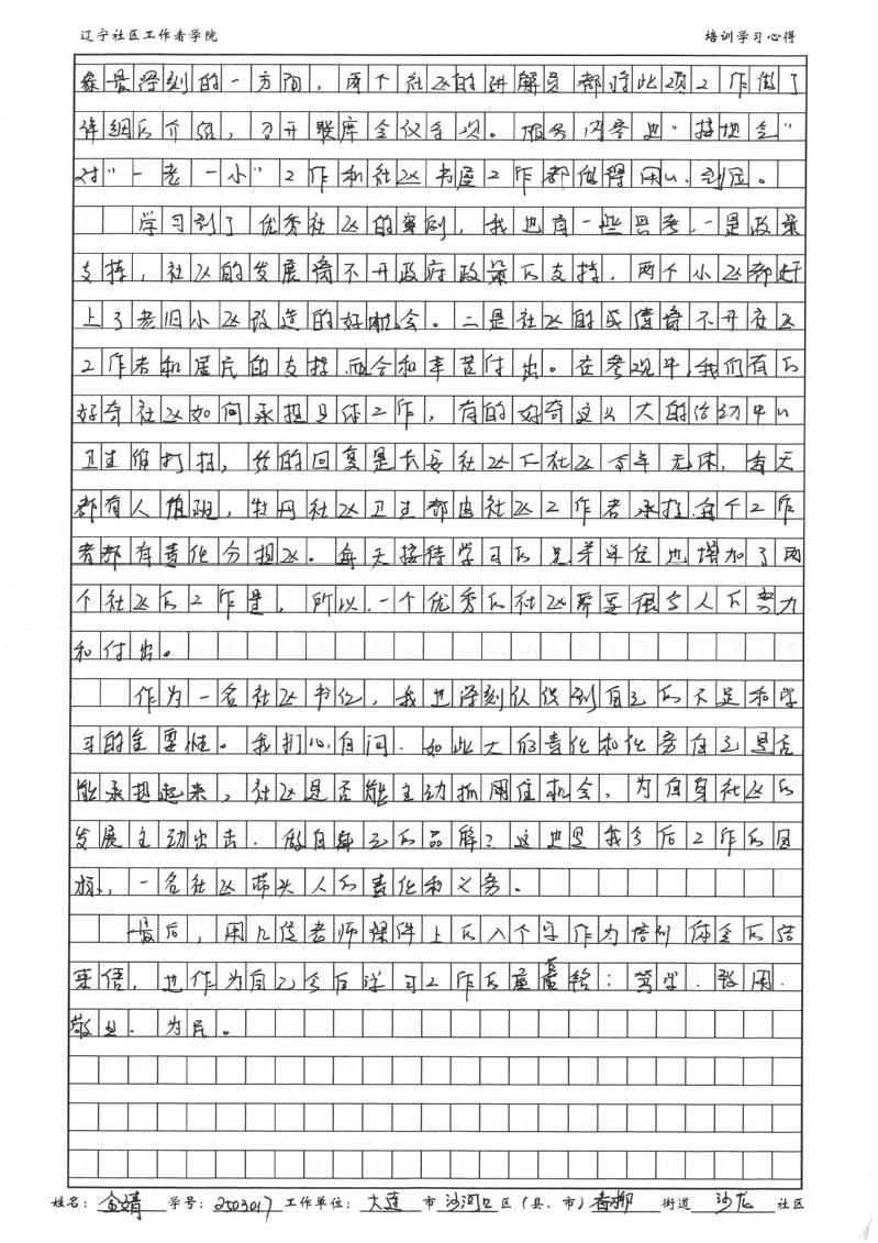 大连市沙河口区春柳街道沙龙社区党委书记、居委会主任金婧学习心得