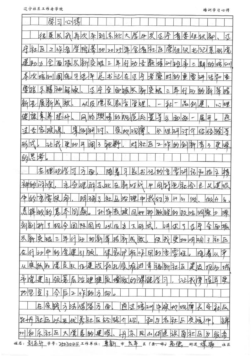 阜新市太平区高德街道煤海社区党委书记、居委会主任刘东升学习心得