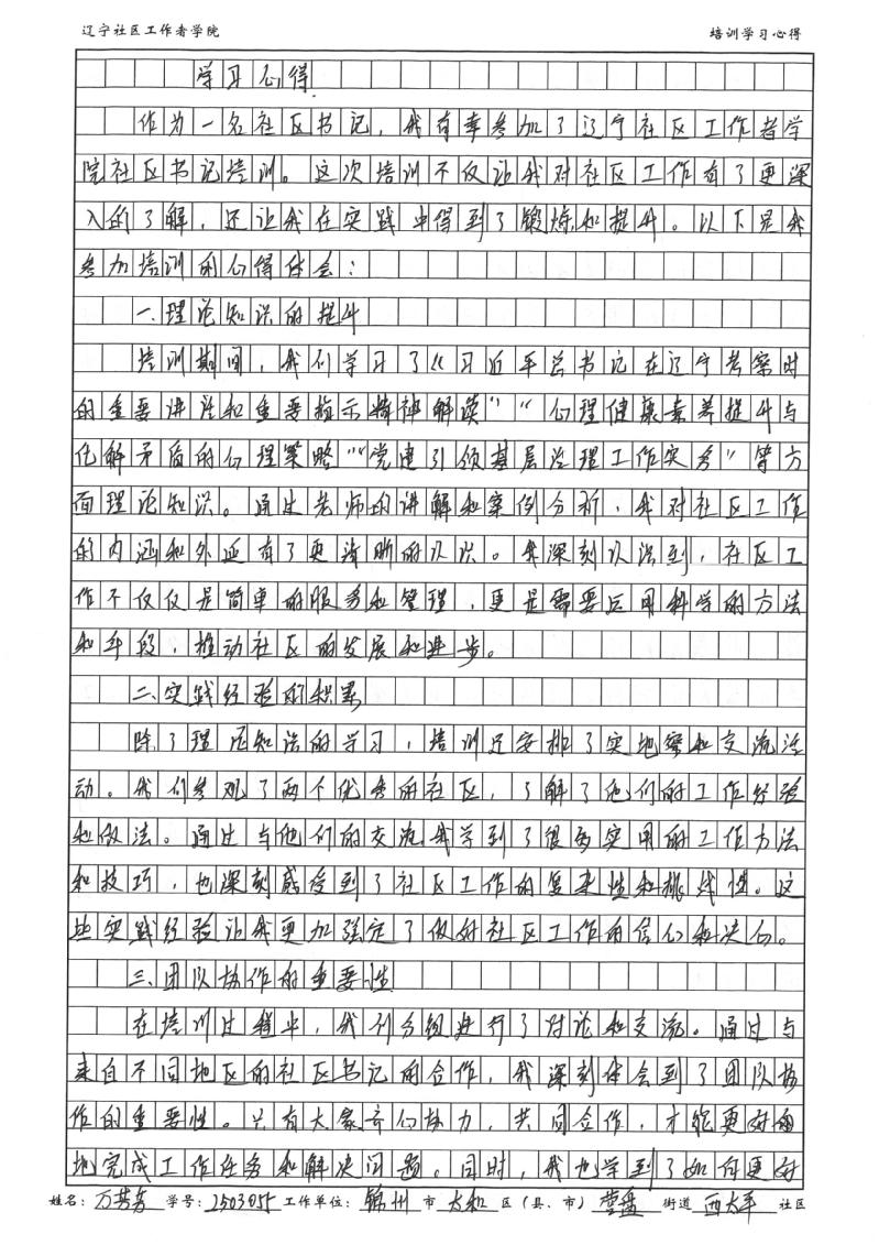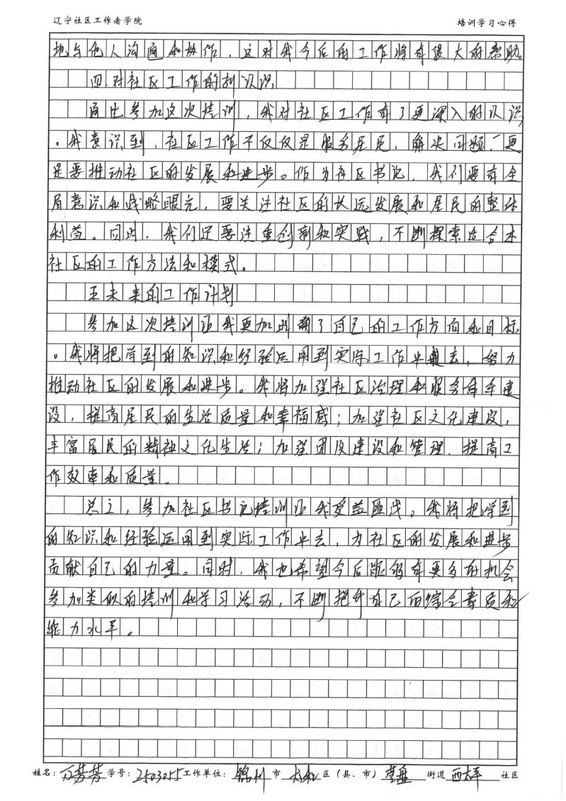 锦州市太和区营盘街道西太平社区党总支书记、居委会主任万芳芳学习心得