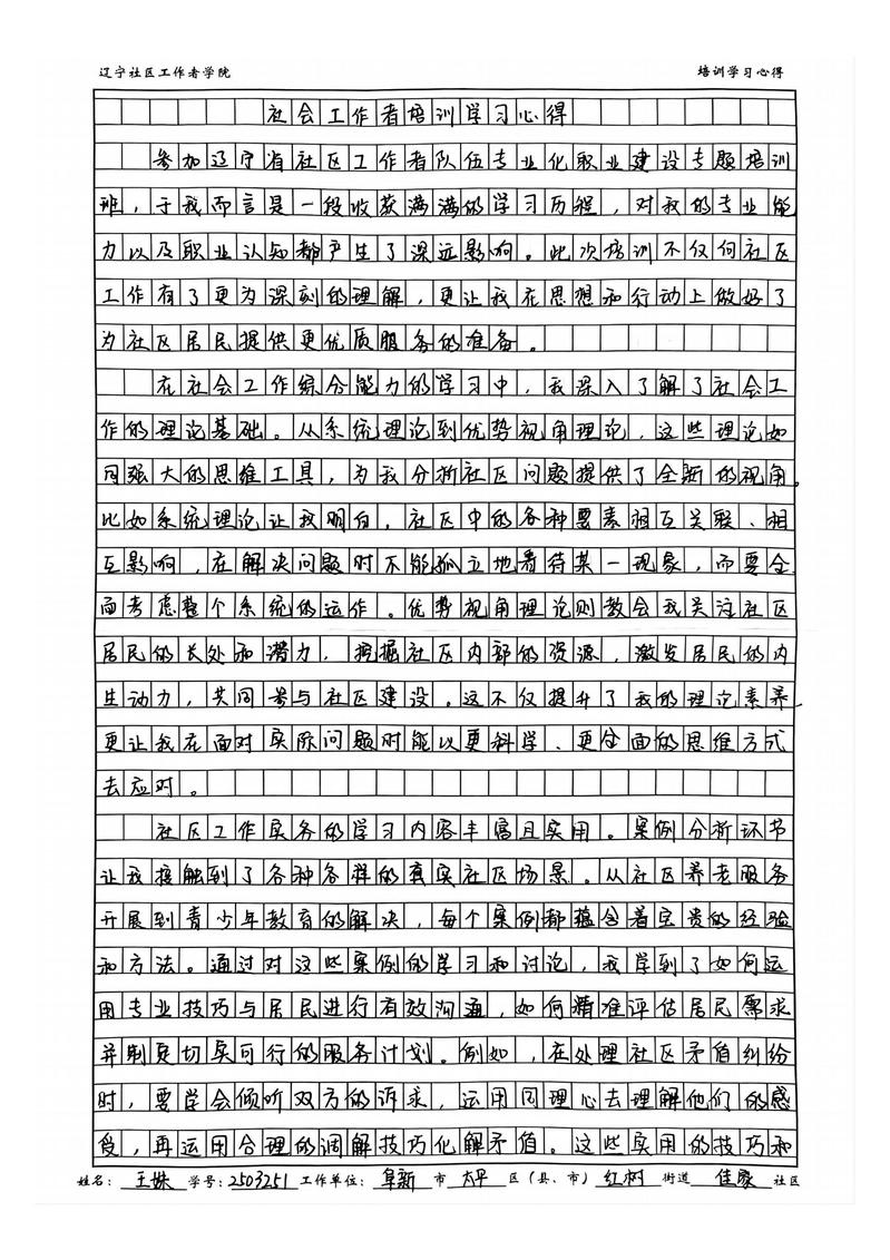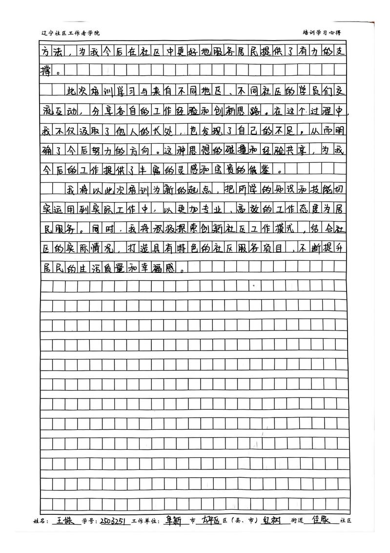 阜新市太平区红树街道佳家社区居委会副主任王姝学习心得