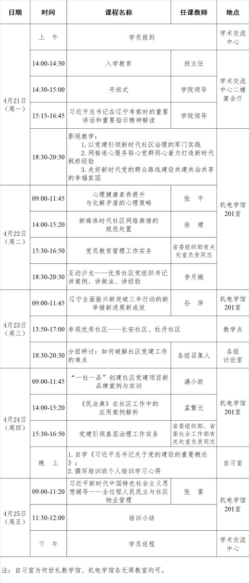 2025年第四期全省社区党组织书记基层党建助力全面振兴新突破三年行动专题培训班(总第160期)课程安排