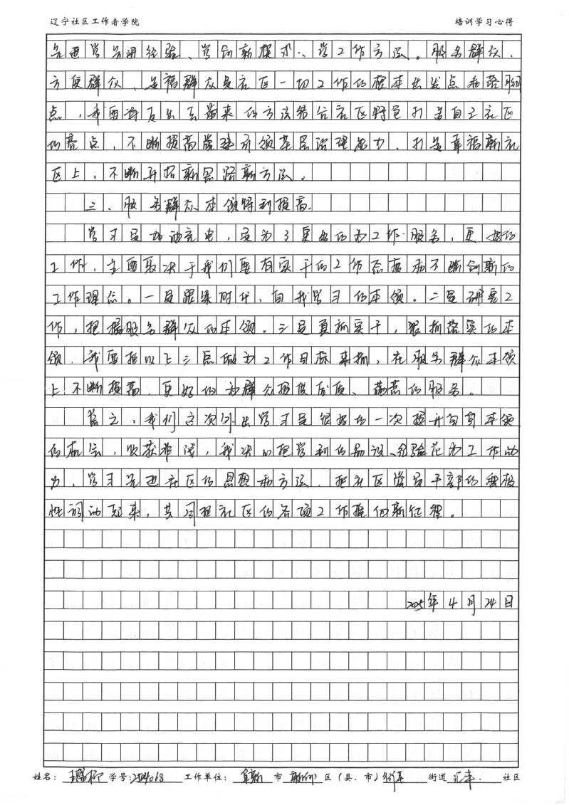 阜新市新邱区街基街道汇丰社区党委书记、居委会主任王盛楠学习心得