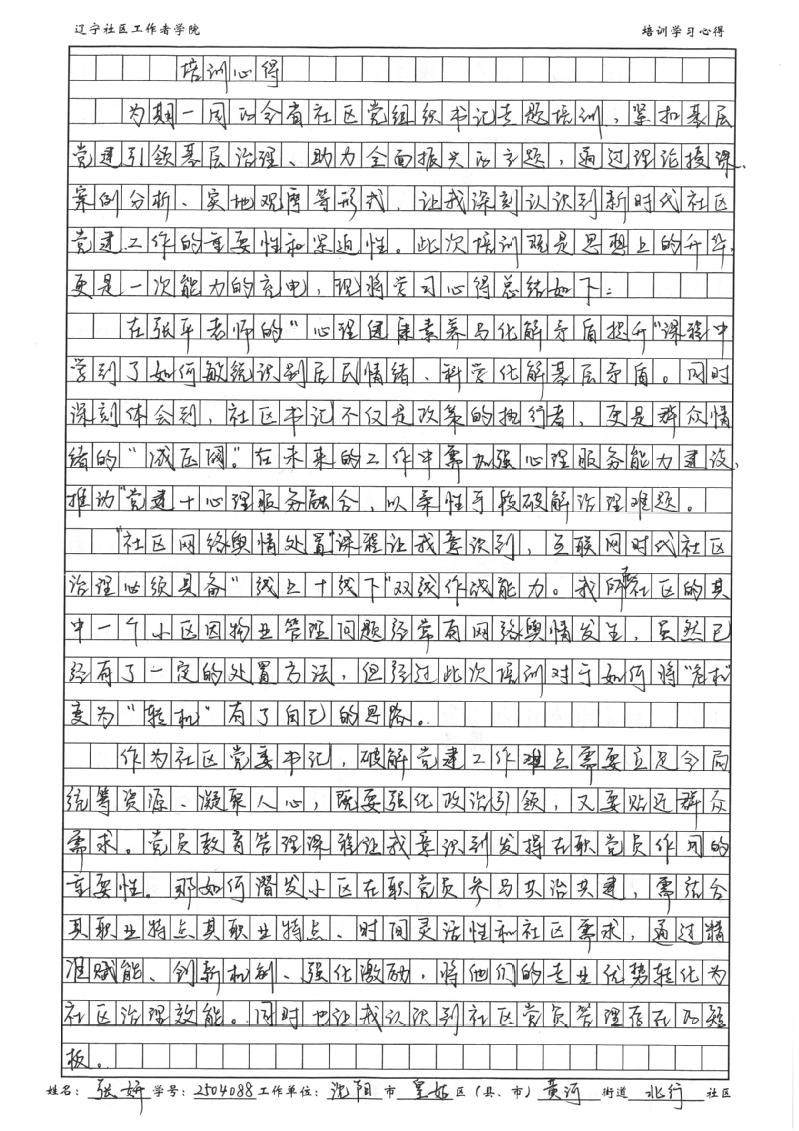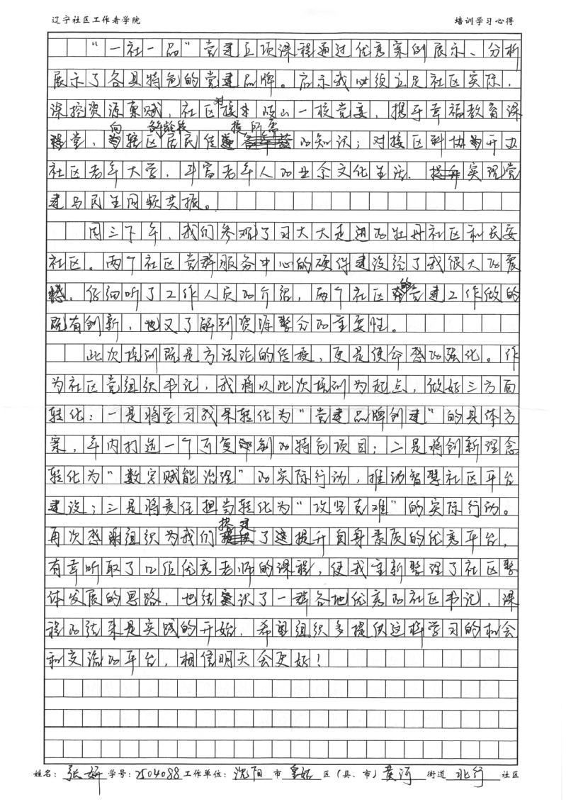 沈阳市皇姑区黄河街道北行社区党委书记、居委会主任张妍学习心得