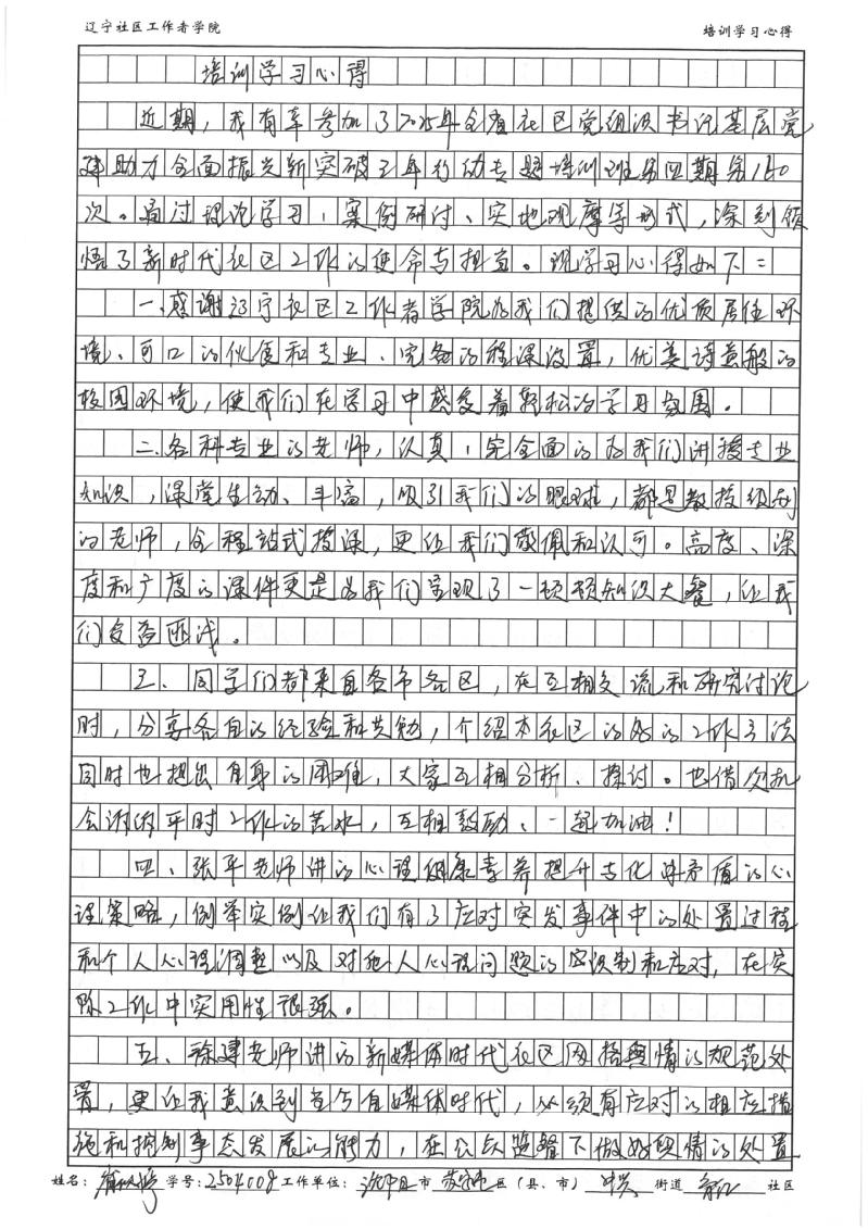 沈阳市苏家屯区中兴街道育红社区党委书记崔欣婷学习心得