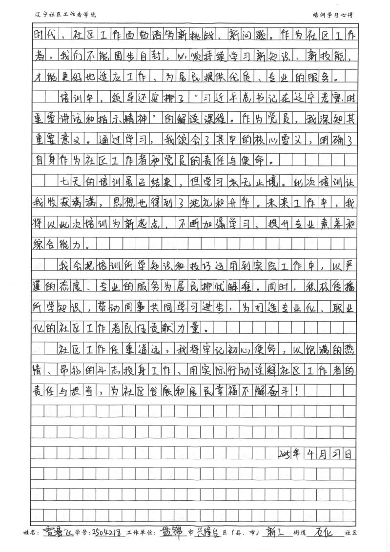 盘锦市兴隆台区新工街道石化社区居委会副主任贾漫飞学习心得