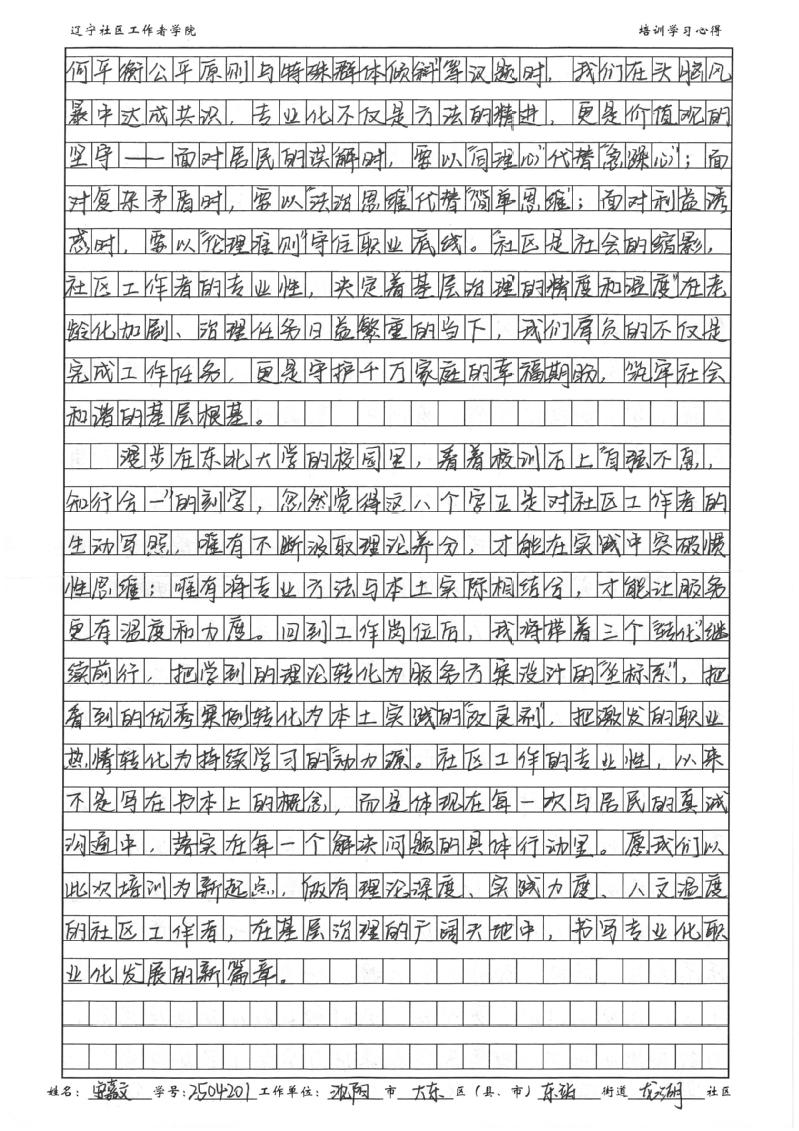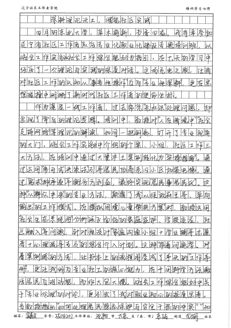 沈阳市大东区东站街道龙湖社区工作者安嘉文学习心得