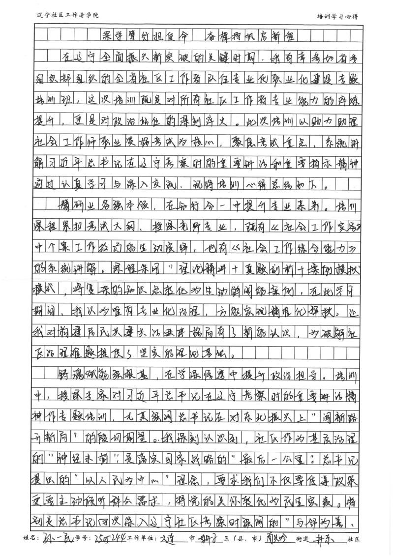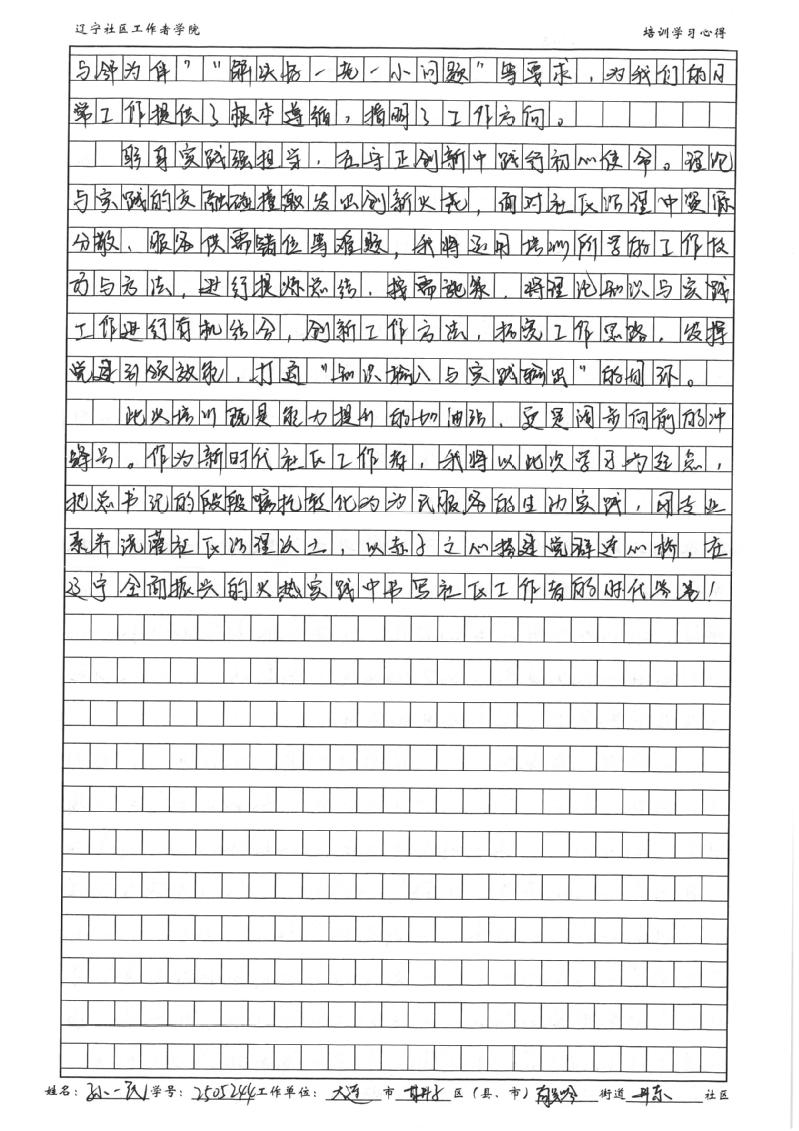 大连市甘井子区南关岭街道井东社区第十网格网格员孙一民学习心得