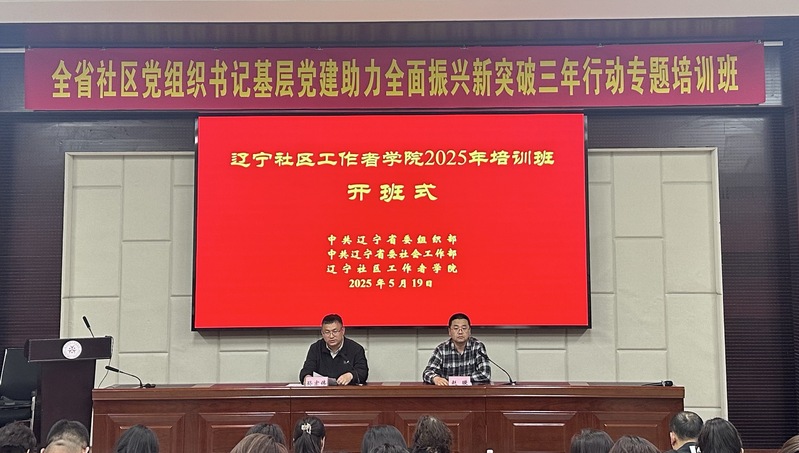 5月19日,2025年第六期全省社区党组织书记基层党建助力全面振兴新突破三年行动专题培训班(总第162期)暨第六期社区工作者队伍专业化职业化建设专题培训班(总第73期)于机电学馆201、202教室开班。开班式由辽宁社区工作者学院负责同志主持,并作开班动员讲话。