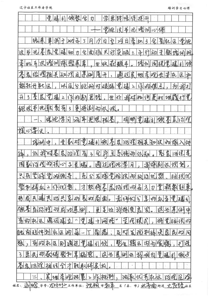 沈阳市和平区北市场街道大庆路社区党委书记、居委会主任刘晗学习心得