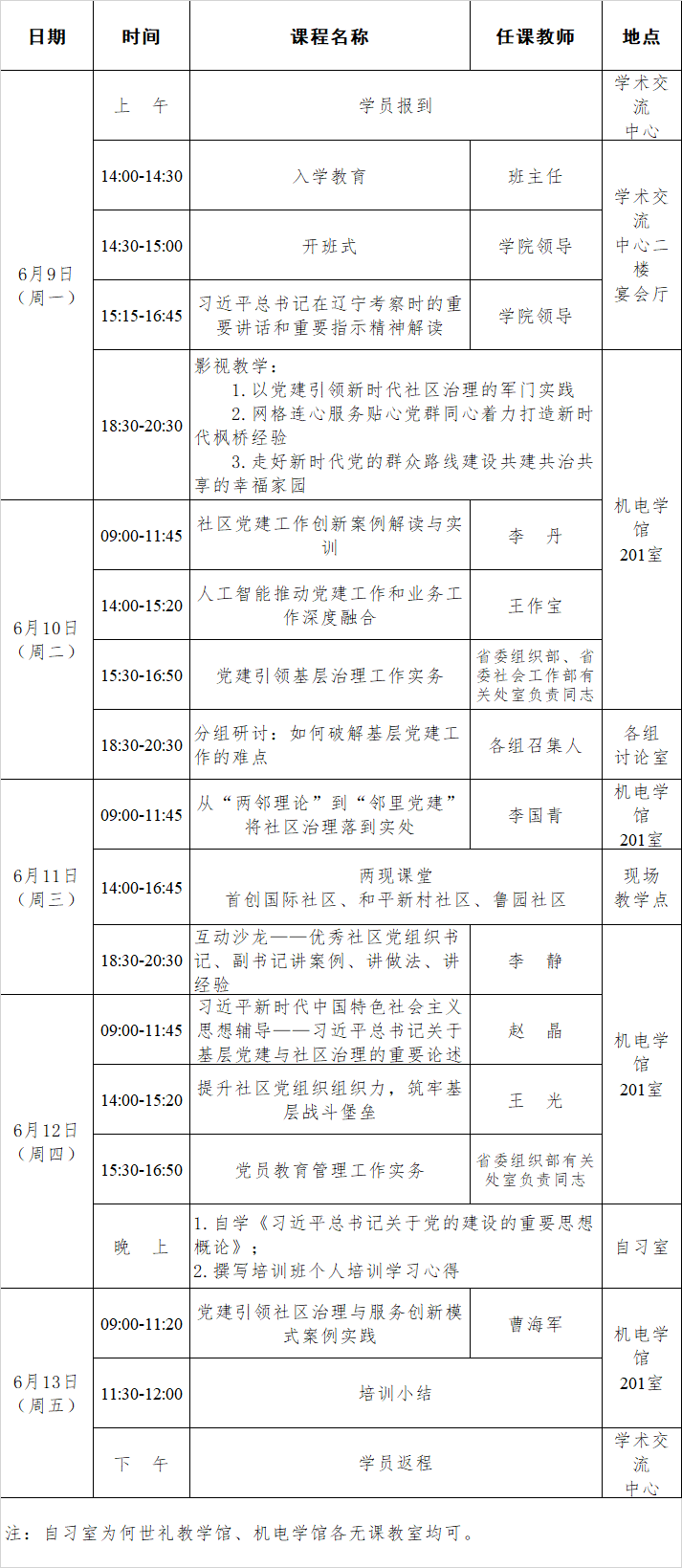 2025年第一期全省社区党组织副书记素质能力提升专题培训班(总第103期)课程安排