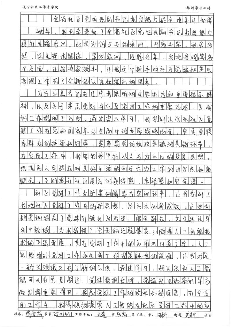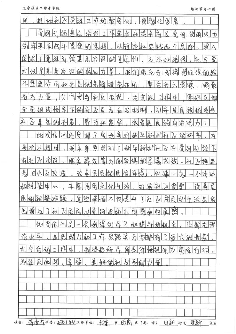 大连市西岗区日新街道更新社区党委副书记蒋雪莉学习心得