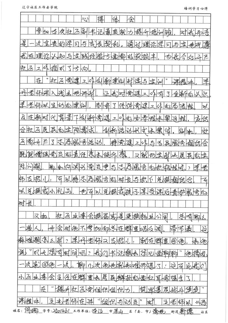 本溪市平山区南地街道新德社区党委副书记闵娜学习心得
