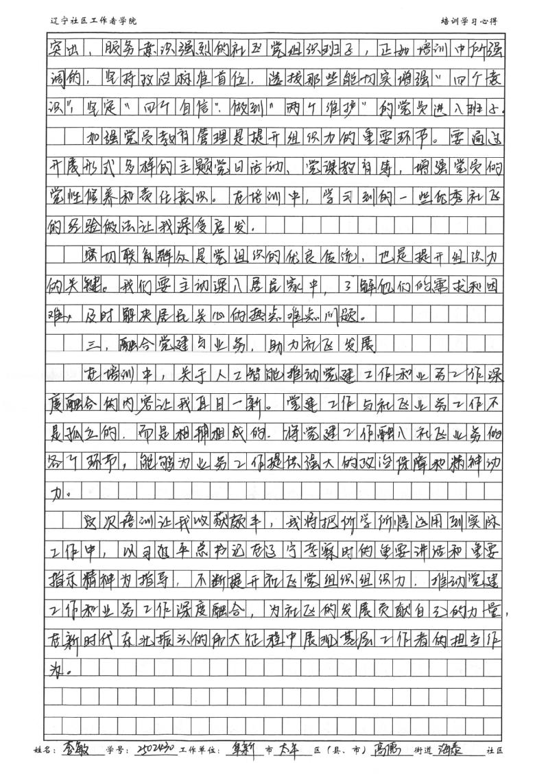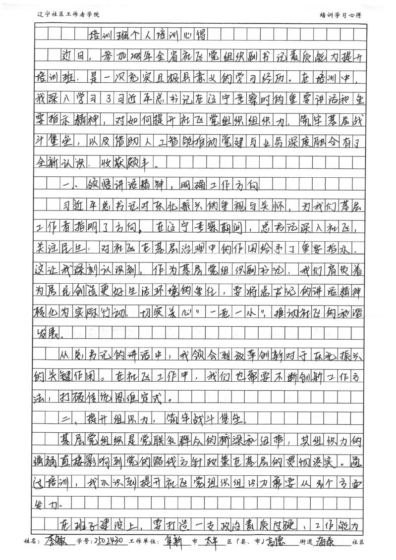 阜新市太平区高德街道海泰社区党委副书记李敏学习心得