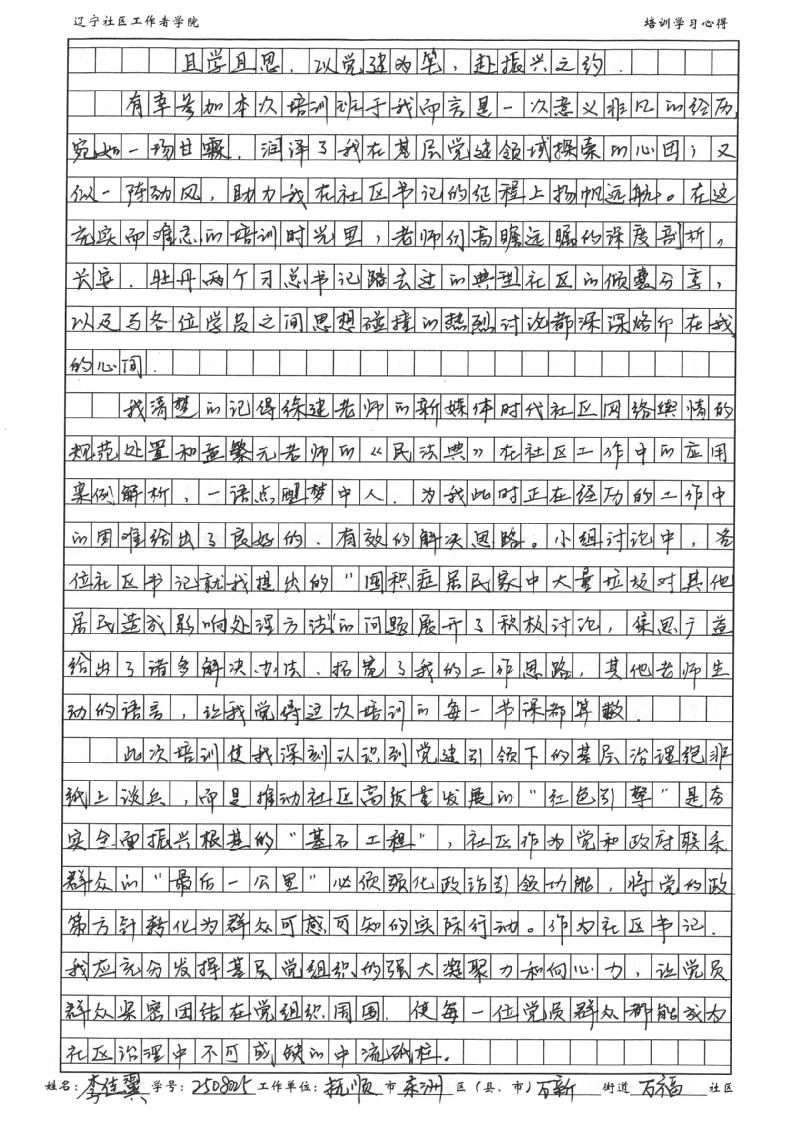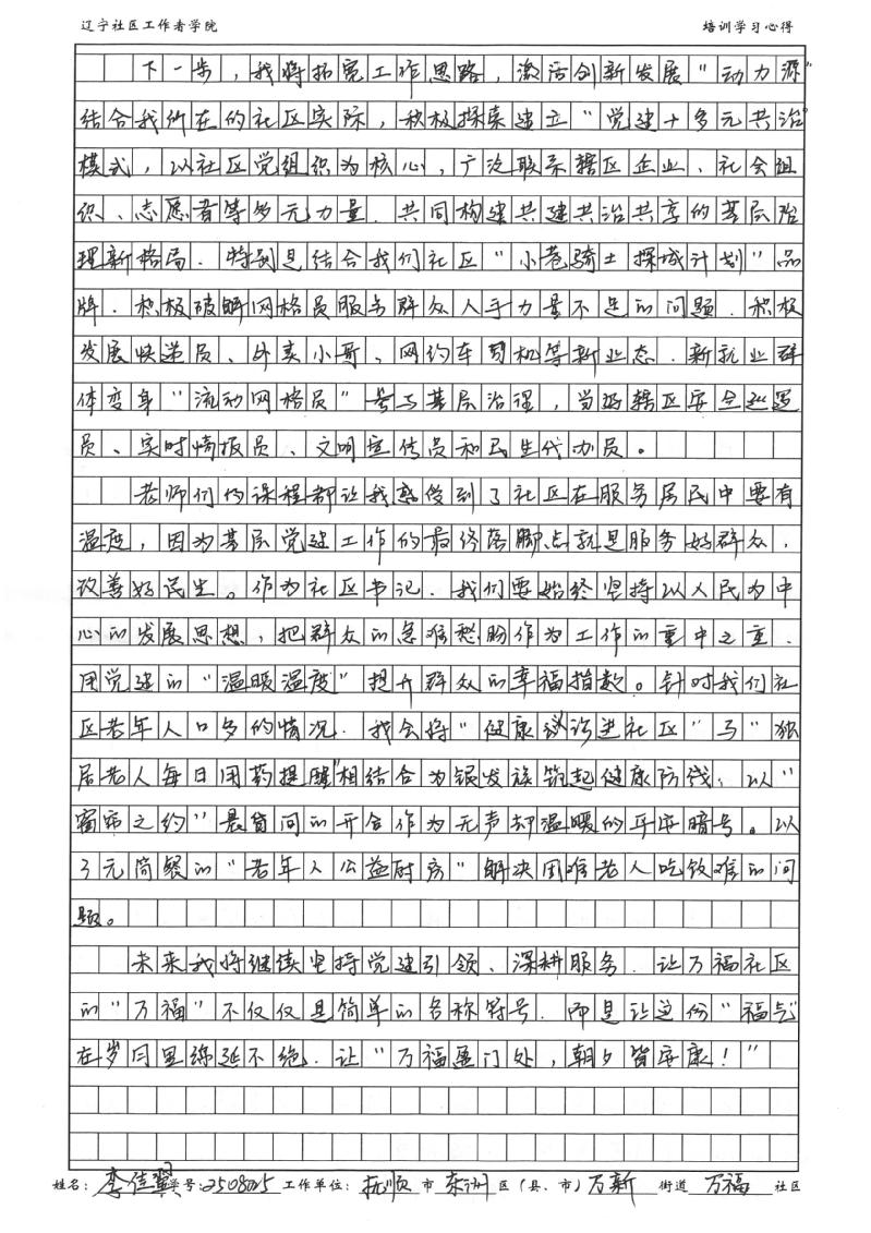 抚顺市东洲区万新街道万福社区党委书记、居委会主任李佳翼学习心得