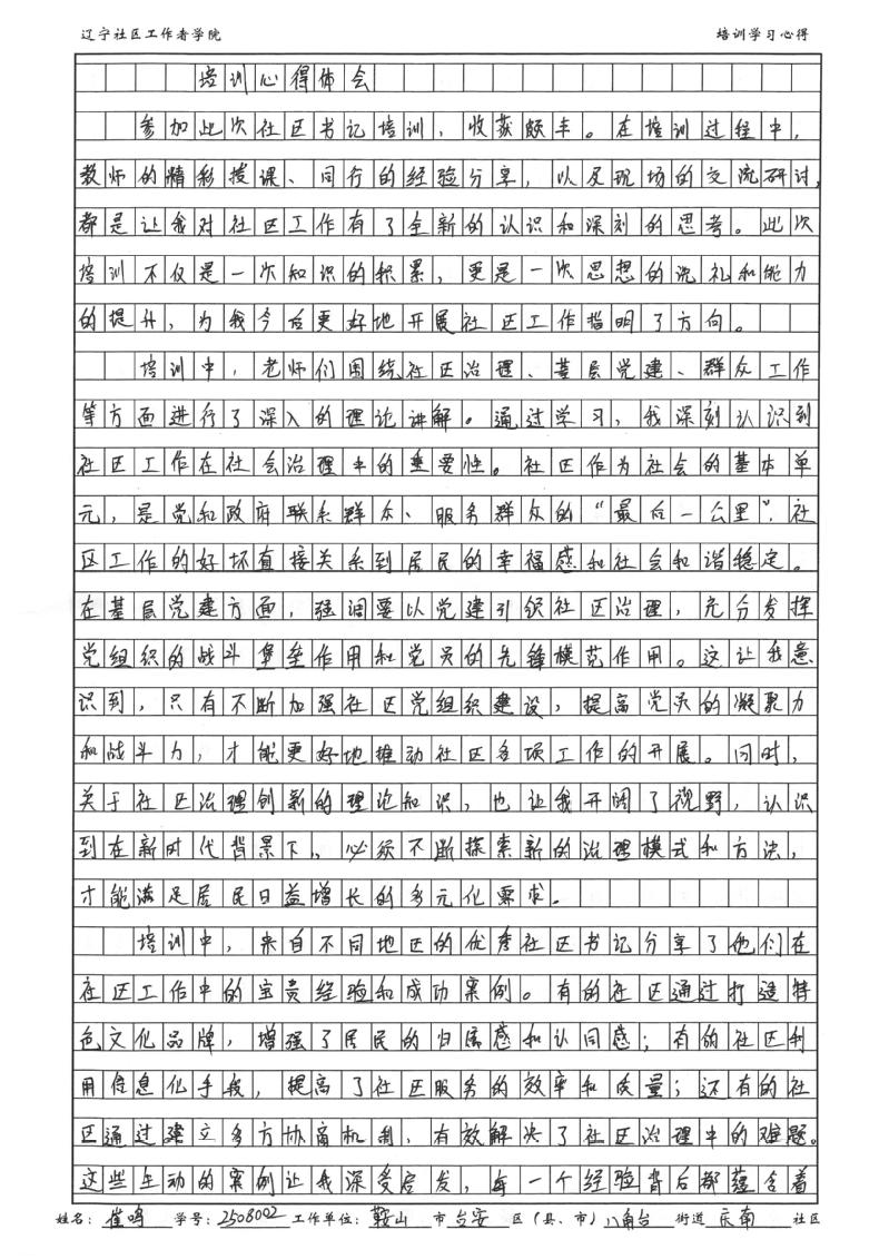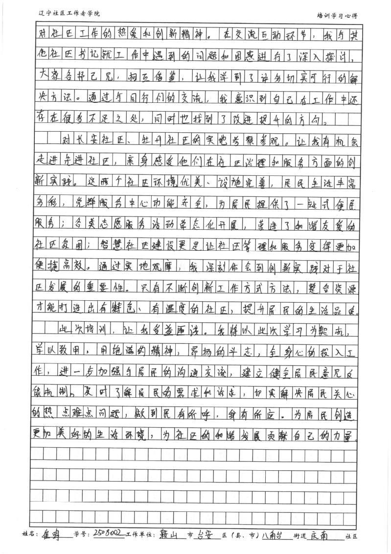 鞍山市台安县八角台街道庆南社区党委书记、居委会主任崔鸣学习心得