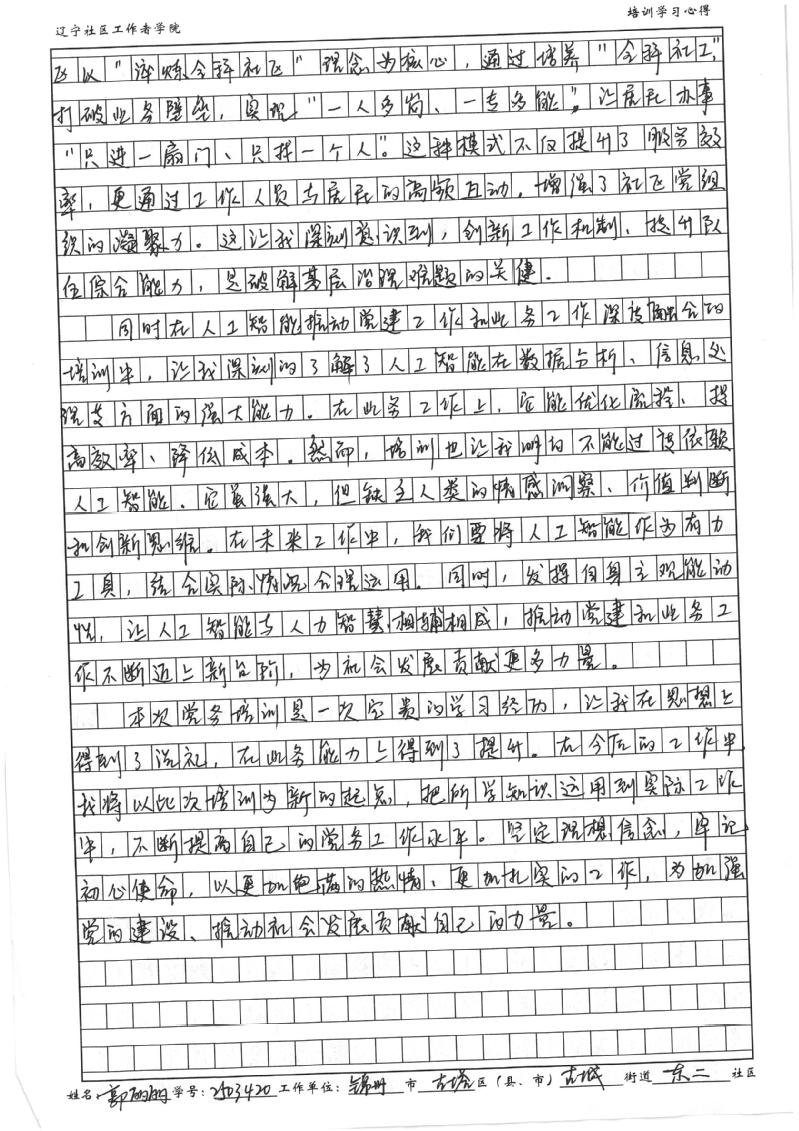 锦州市古塔区古城街道东二社区党委副书记郭丽丽学习心得