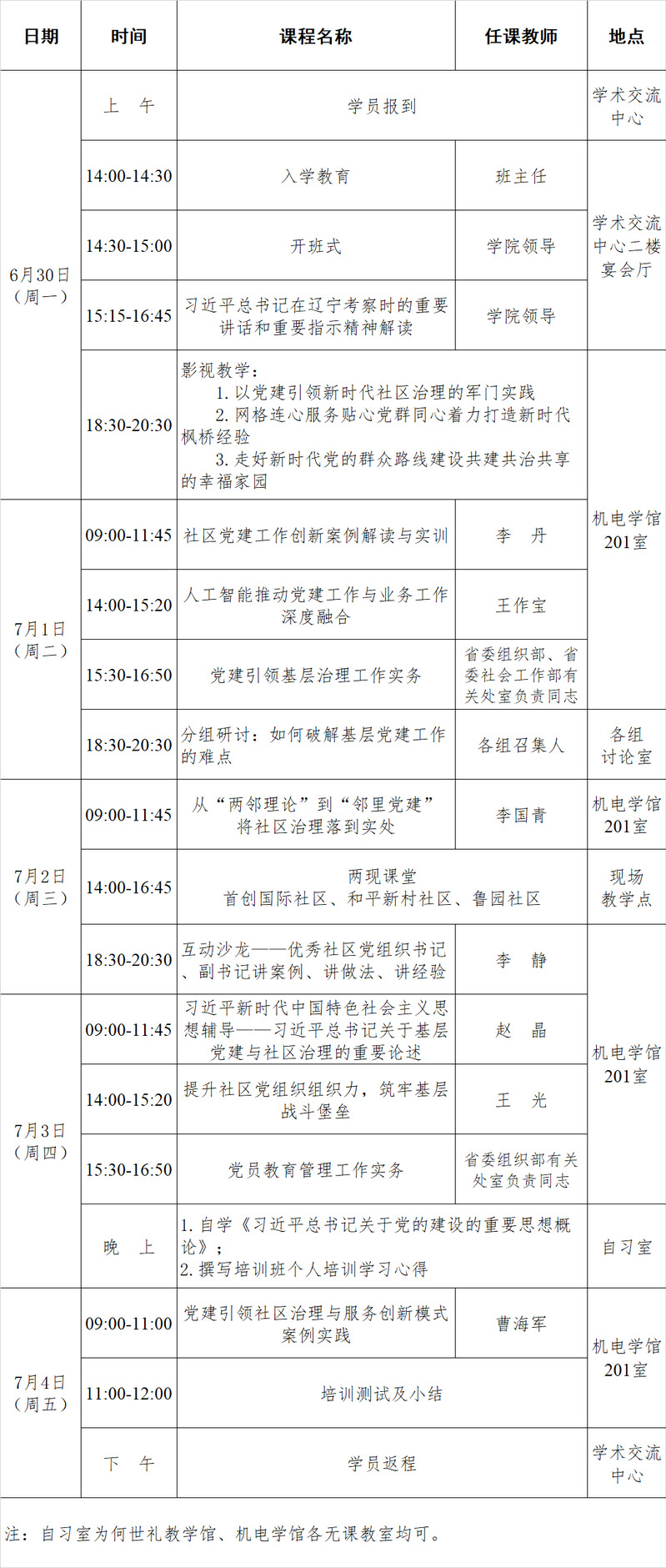 2025年第四期全省社区党组织副书记素质能力提升专题培训班(总第106期)课程安排