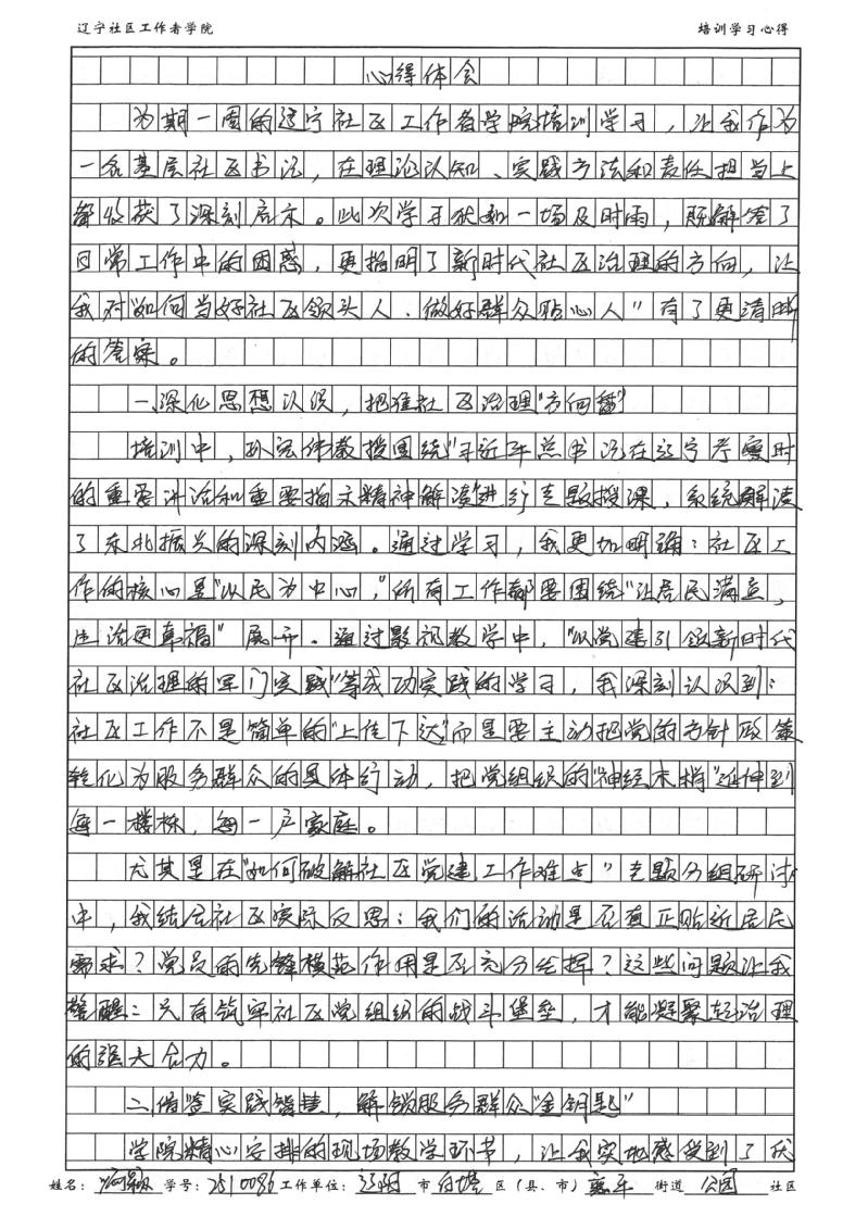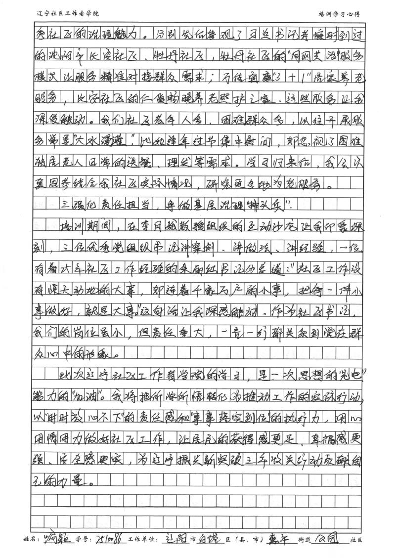 辽阳市白塔区襄平街道公园社区党委书记、居委会主任喻颖学习心得