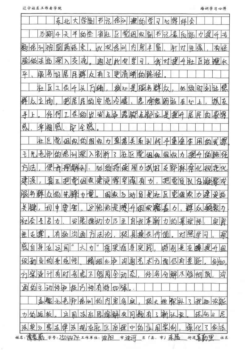沈阳市沈河区东陵街道喜勤里社区党总支副书记谭紫薇学习心得