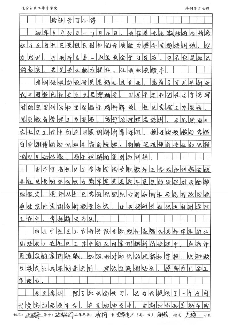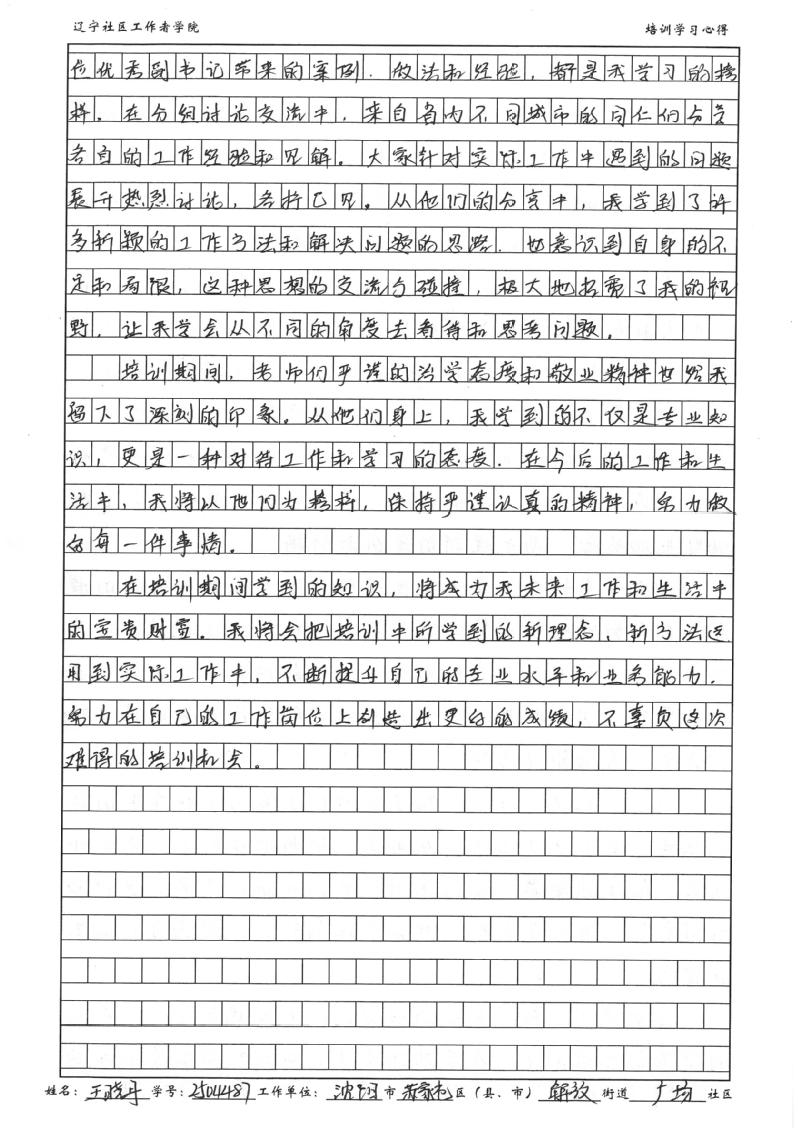 沈阳市苏家屯区解放街道广场社区党委副书记王晓丹学习心得