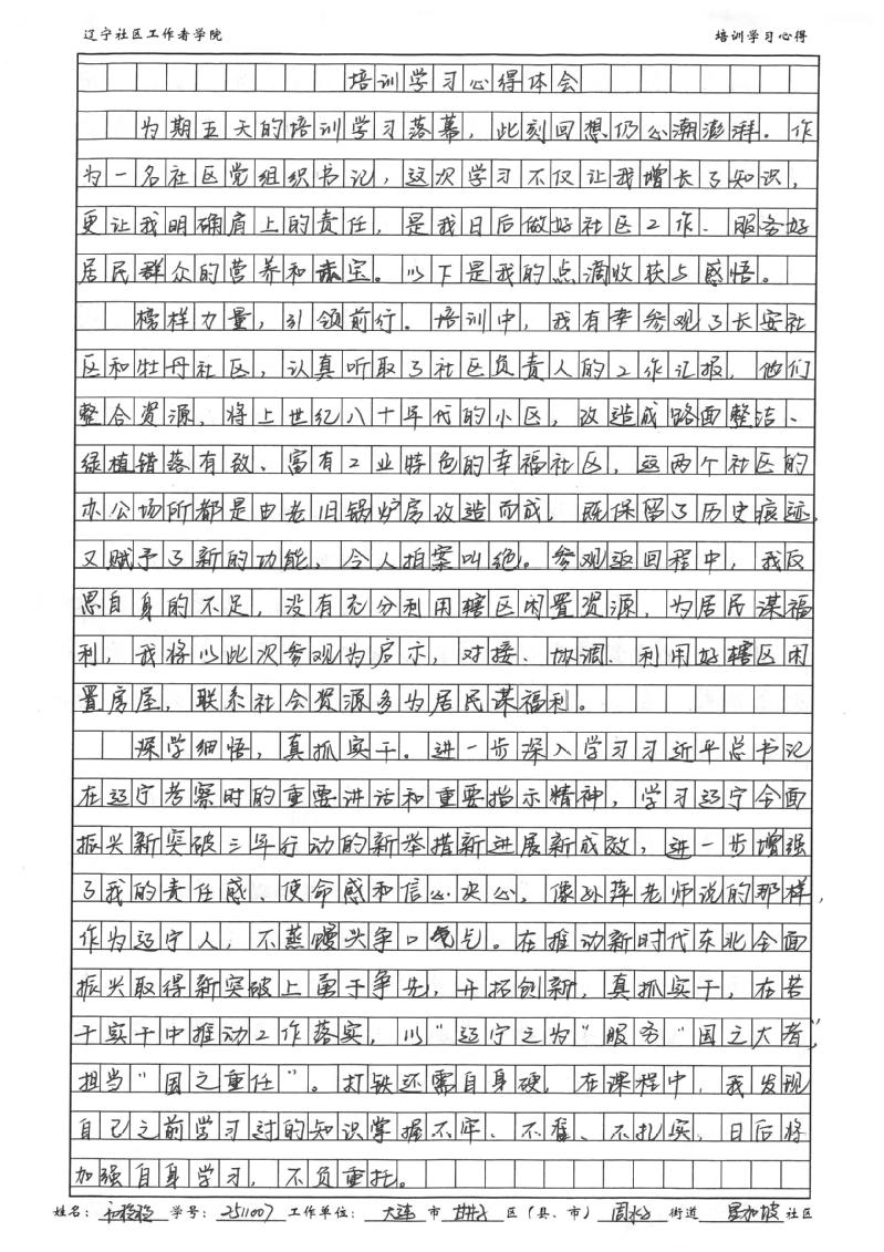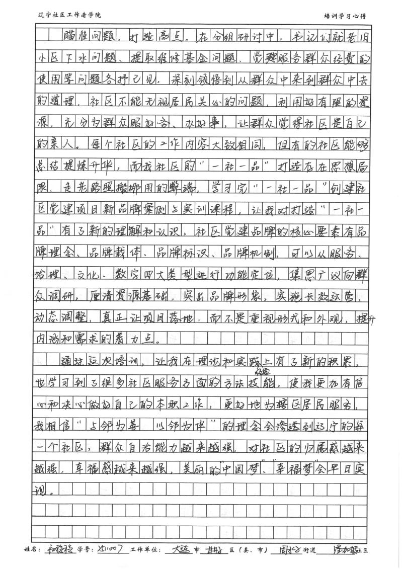 大连市甘井子区周水子街道星加坡社区党委书记、居委会主任初稳稳学习心得