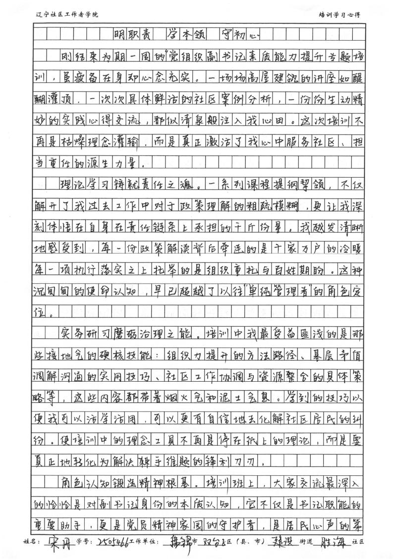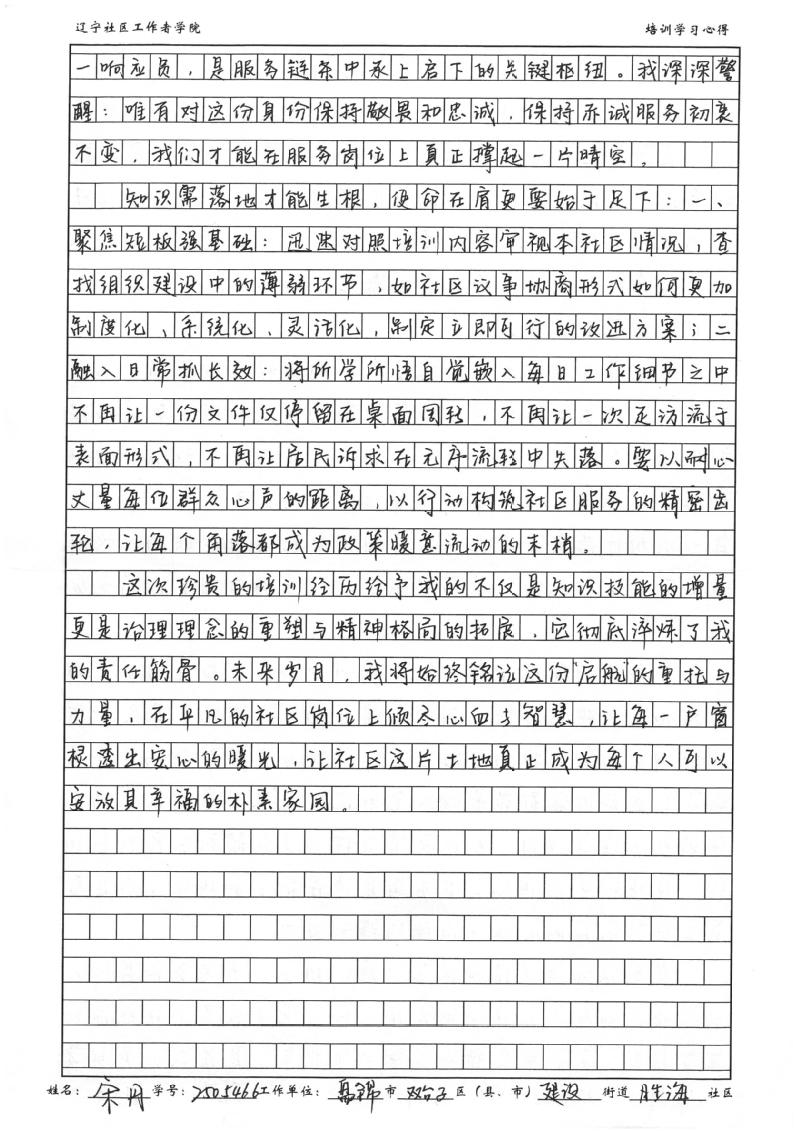 盘锦市双台子区建设街道胜海社区党委副书记宋丹学习心得