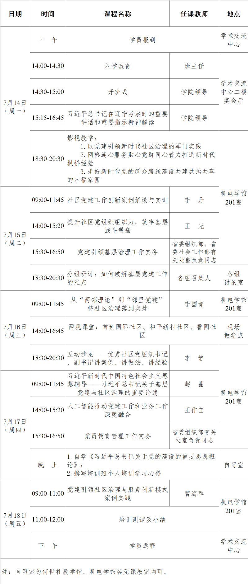 2025年第六期全省社区党组织副书记素质能力提升专题培训班(总第108期)课程安排